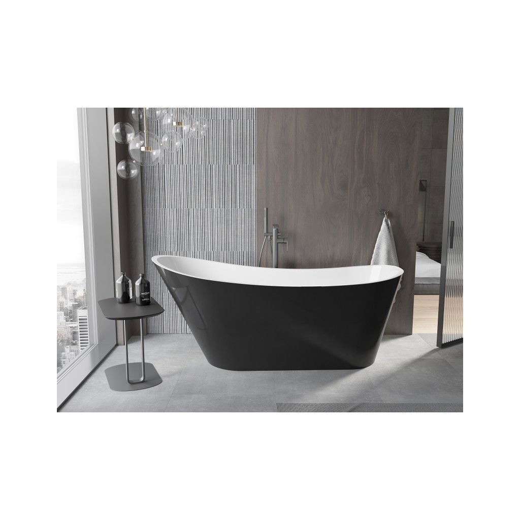 Mexen Alta, volně stojící vana 170 x 75 cm, bílá-černá, grafitový matný hladký přepad, 52141707575-95