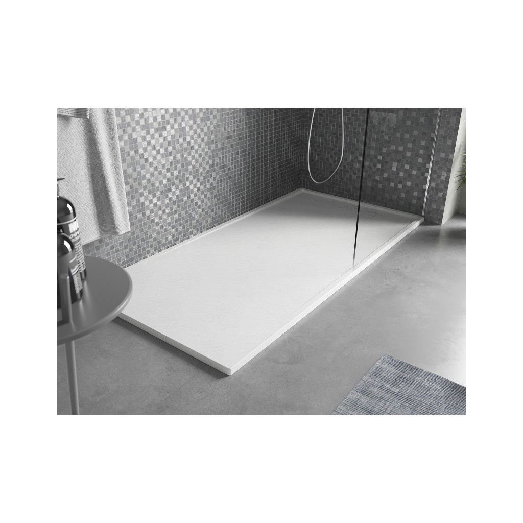 Sprchová vanička je vyrobena z kompozitního materiálu SMC, který se vyznačuje výjimečnou odolností vůči vlhkosti, mechanickému poškození a čistícím prostředkem, což se promítá do mimořádné trvanlivosti produktu, lehkosti a elegance. Kompozitní povlak SMS, který imituje kámen, díky svým vlastnostem nereaguje na změny teploty, což jej činí příjemným na používání.