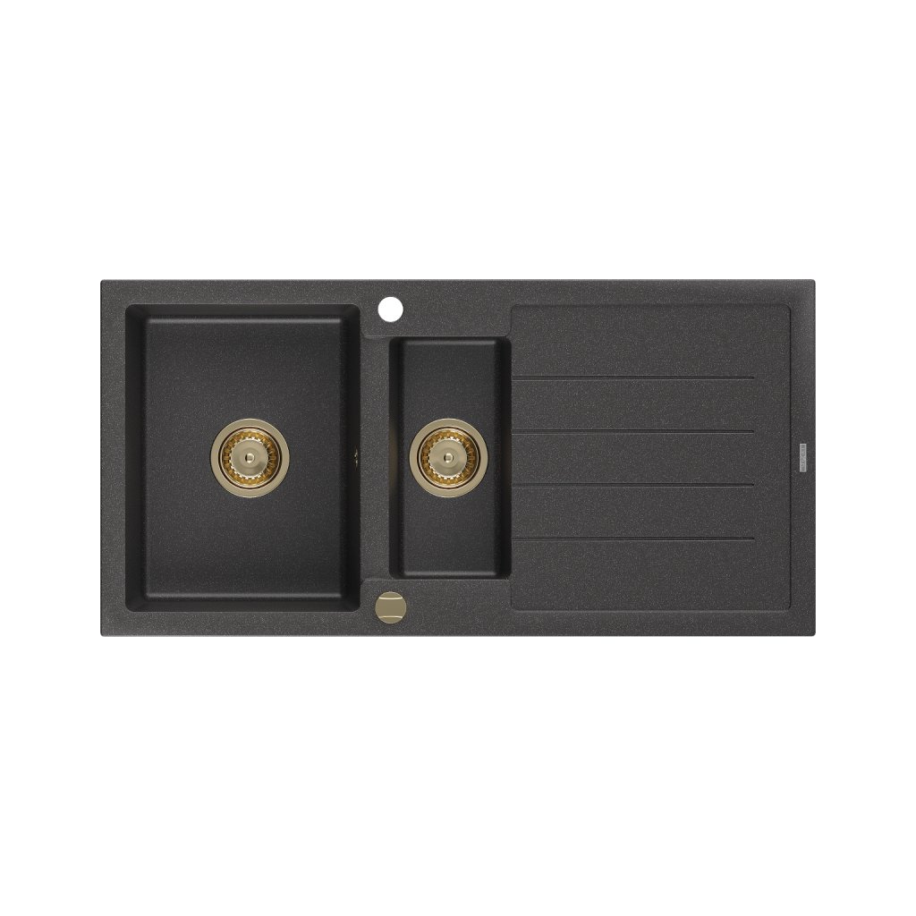 Mexen Andres, granitový dřez 1000x500x200 mm, 1,5-komorový, černá skvrnitá se zlatým sifonem, 6515101510-76-G