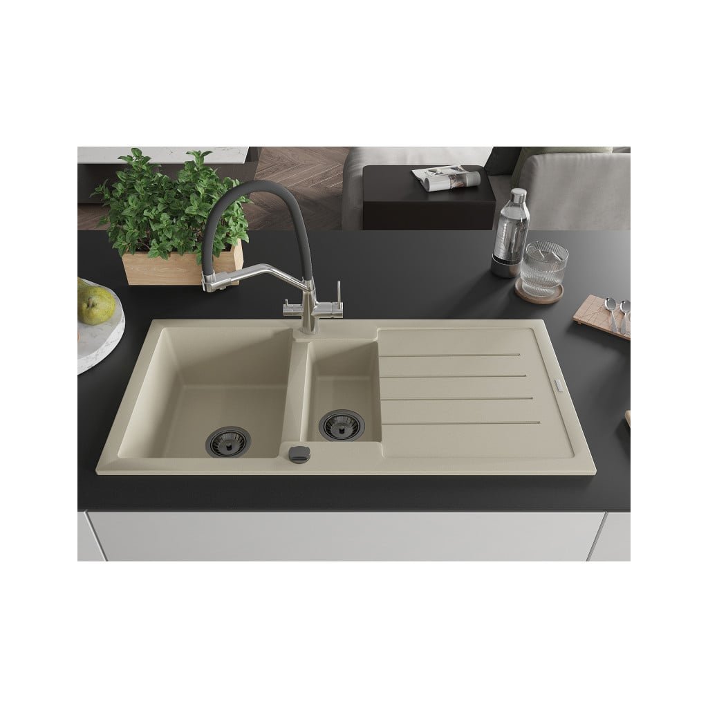 Mexen Andres, granitový dřez 1000x500x200 mm, 1,5-komorový a dřezová baterie Duo, béžová, 6515-69-671701-07-B