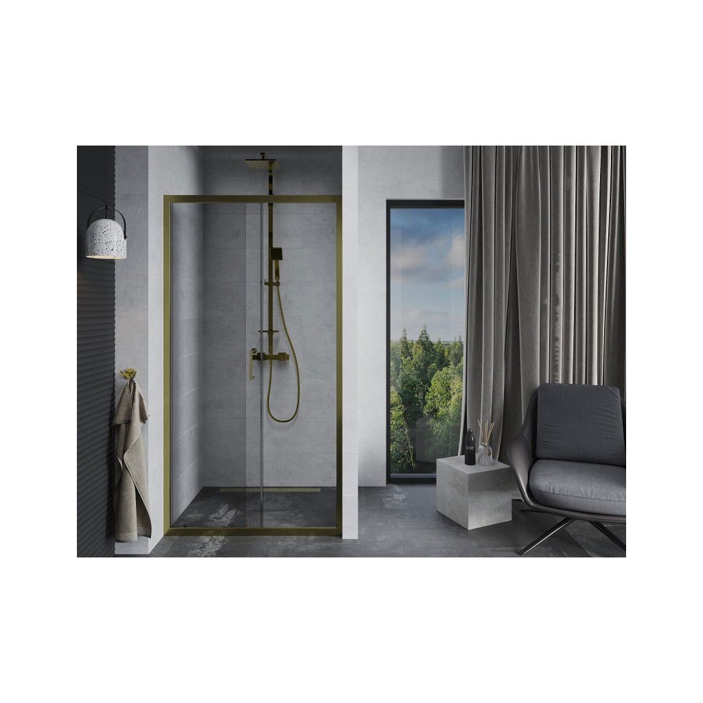 Mexen Apia, posuvné dveře do otvoru 135 x 190 cm, 5mm čiré sklo, zlatý profil, 845-135-000-50-00