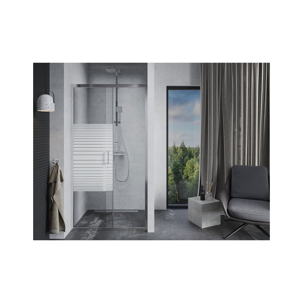 Mexen Apia, posuvné dveře do otvoru 150 x 190 cm, 5mm čiré sklo - pásky, chromový profil, 845-150-000-01-20