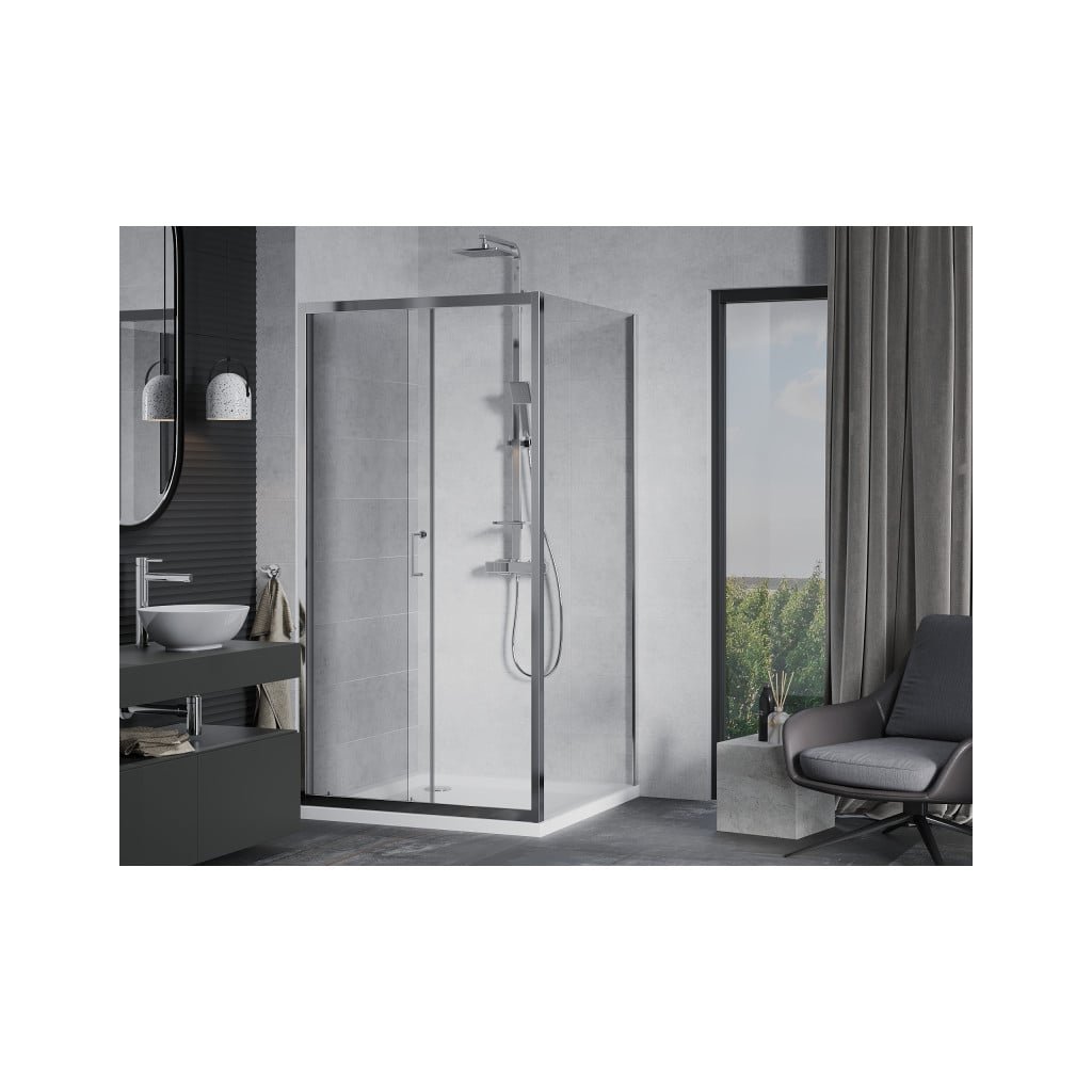 Mexen Apia posuvný sprchový kout 100 x 100 cm, 5mm sklo, chromový profil-čiré sklo + slim sprchová vanička 5cm, 840-100-100-01-00-4010