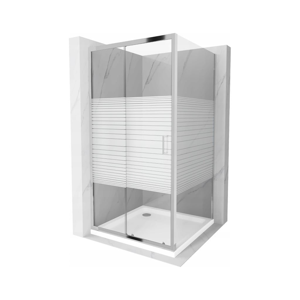 Mexen Apia posuvný sprchový kout 90 x 90 cm, 5mm sklo, chromový profil-čiré sklo/pásy + slim sprchová vanička 5cm, 840-090-090-01-20-4010