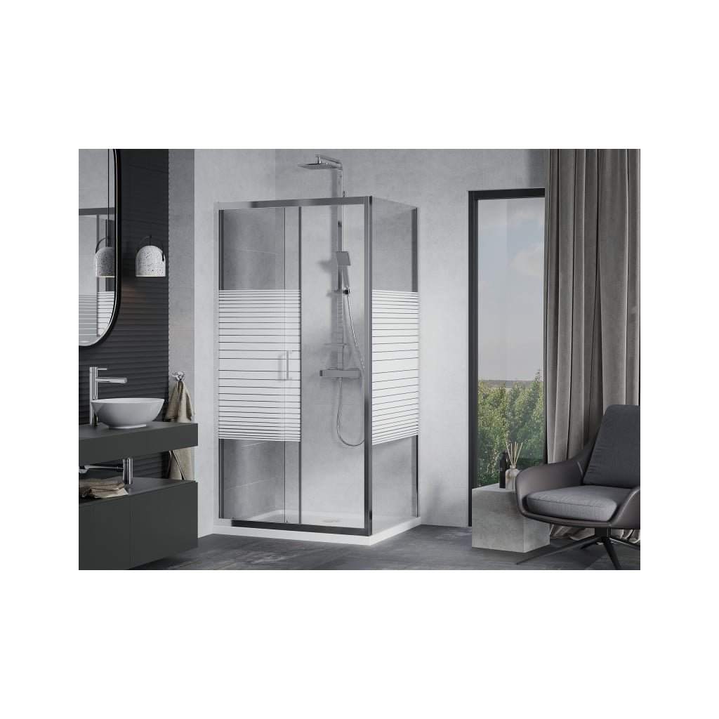 Mexen Apia sprchový kout s posuvnými dveřmi 130 x 80 cm, čiré sklo/pásy-chromový profil + sprchová vanička, 840-130-080-01-20-4010