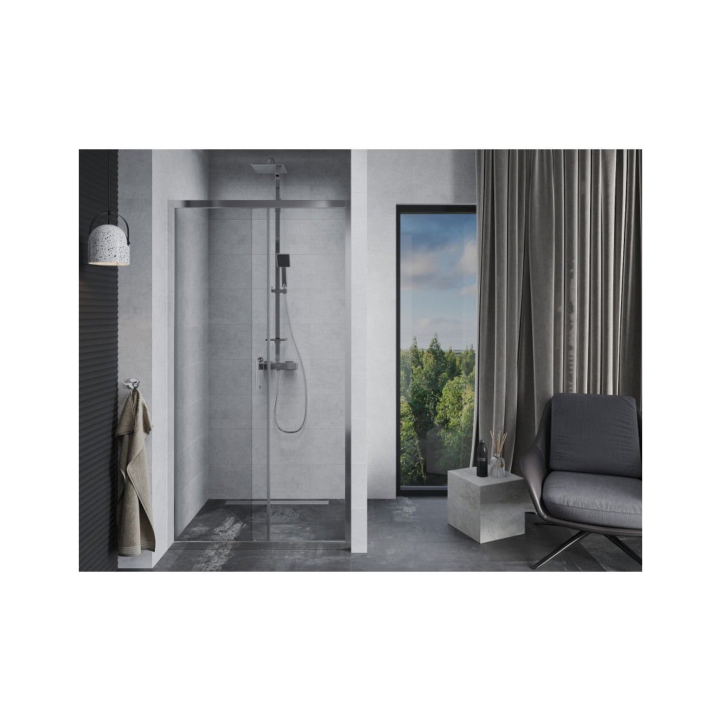 Sprchové dveře ze série Mexen Apia. Funkční posuvné dveře se spolehlivými dvojitými kolečky, které zaručují hladké a tiché posouvání. Potah na skle usnadňuje jejich mytí a umožňuje vám tak užít si dokonale průhledné a lesklé sklo déle. Tvrzené, bezpečnostní sklo a prvky povrchové úpravy dveří byly vyrobeny z nerezavějícího materiálu. Hliníkový profil s prahem zaručuje dokonalou těsnost. Instalace je možná do stěnového otvoru pro sprchovou vaničku nebo dlažbu.