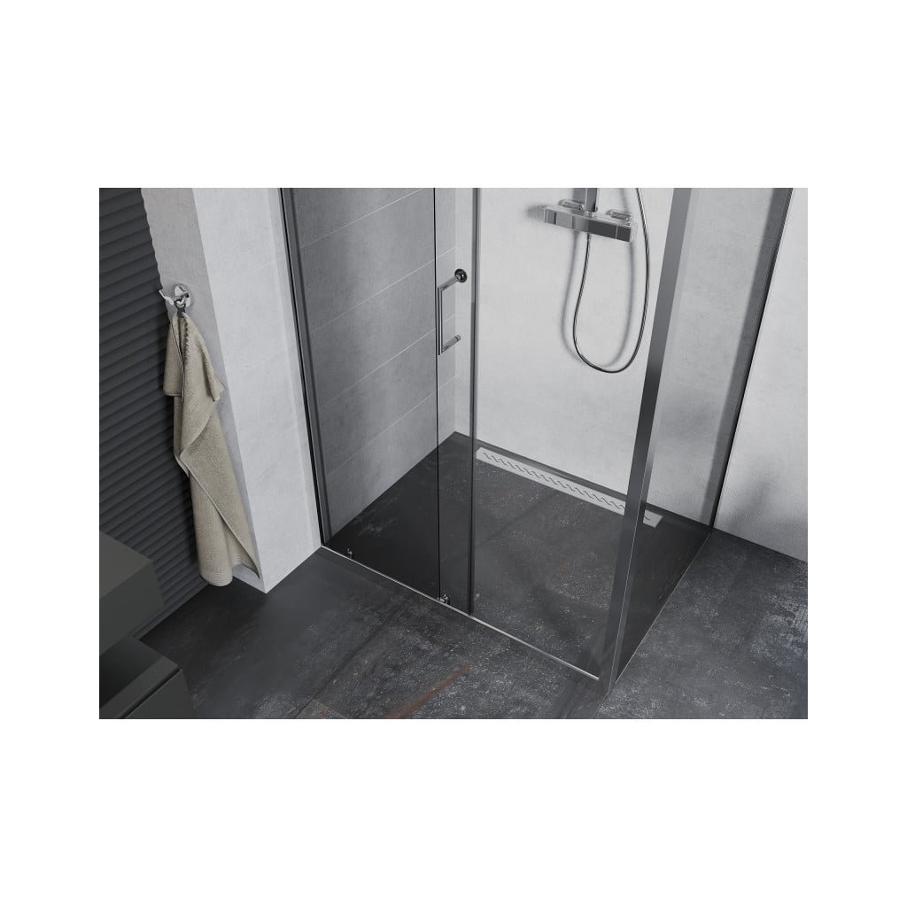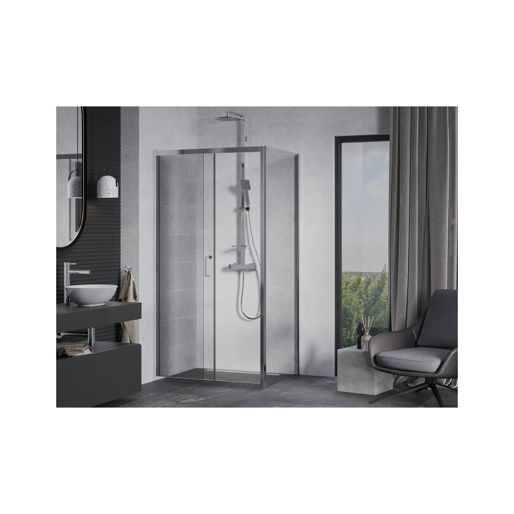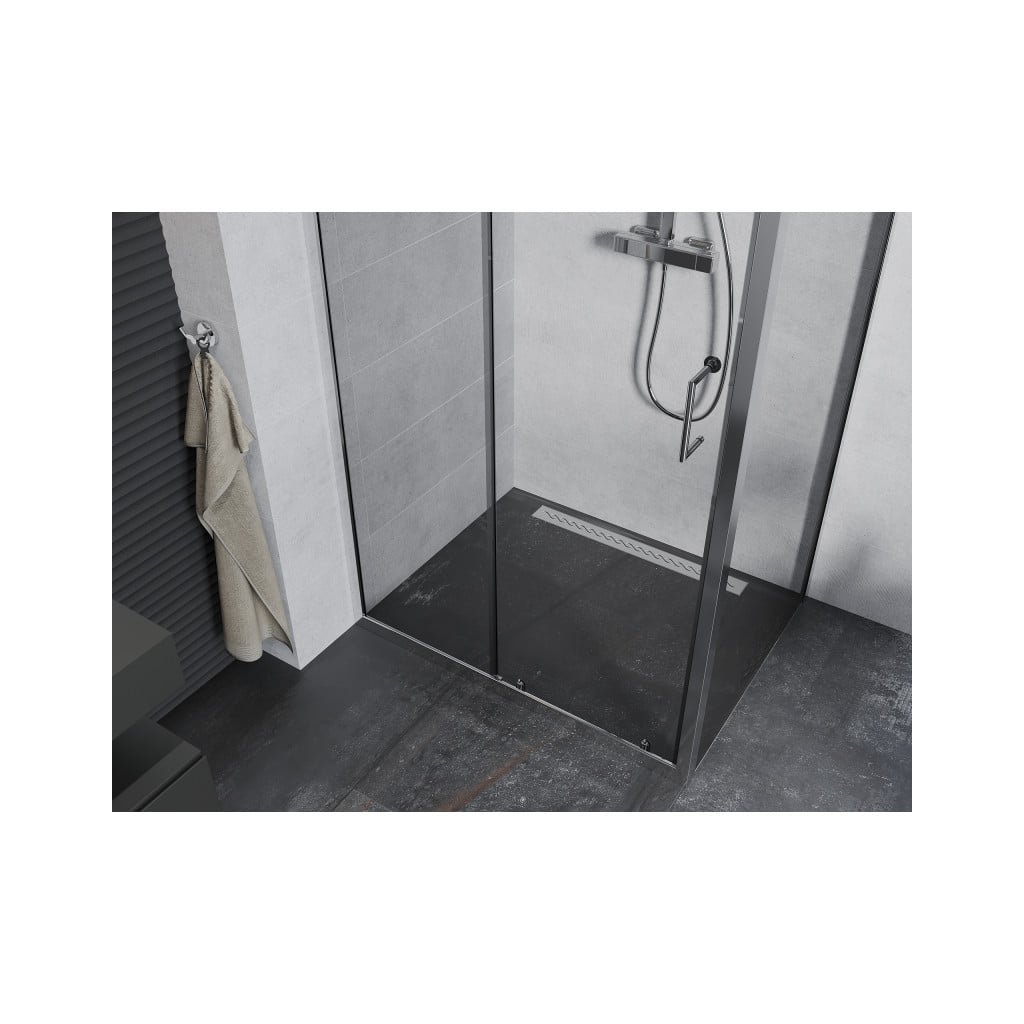 Sprchový kout ze série Mexen Apia je skvělá volba vyrobená z 5mm tvrzeného skla v čirém provedení. Sprchové posuvné dveře obsahují spolehlivá dvojitá kolečka, která zaručují hladké a tiché posouvání. K otevírání slouží decentní kovová rukojeť. Speciální potah na skle usnadňuje jeho mytí a umožňuje vám tak si užít dokonale průhledné a lesklé sklo déle. Tvrzené a bezpečné sklo a prvky povrchové úpravy dveří byly vyrobeny z nerezavějícího materiálu potaženého vysoce lesklým chromem. Hliníkový profil s prahem zaručuje dokonalou těsnost. Instalace je možná na sprchovou vaničku nebo dlažbu (sprchová vanička ani odtokový žlab nejsou součástí balení, ale můžete si je zakoupit v našem e-shopu). Osazení sprchového koutu je univerzální, v levém nebo pravém provedení.