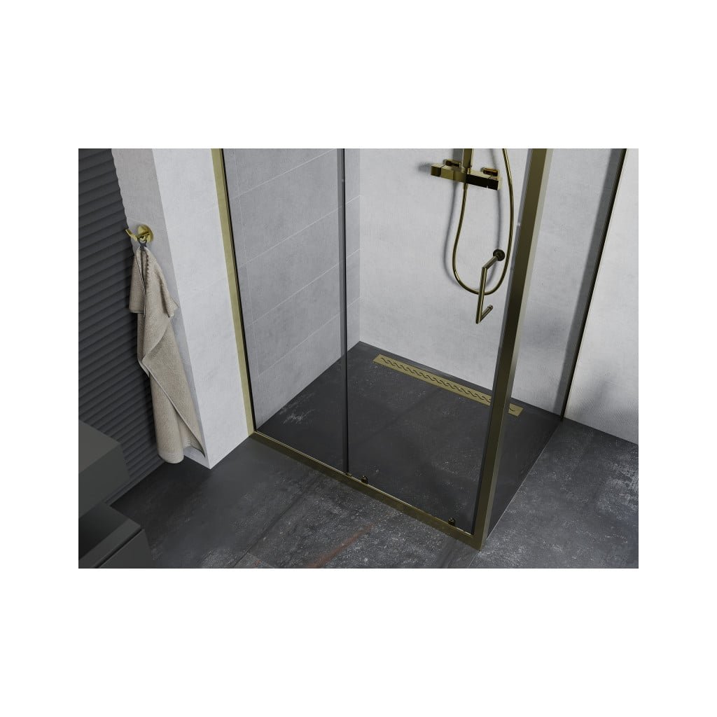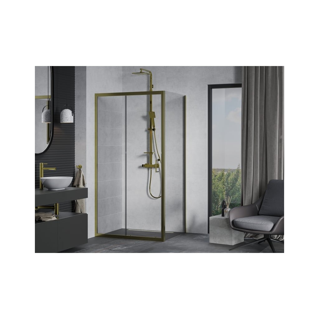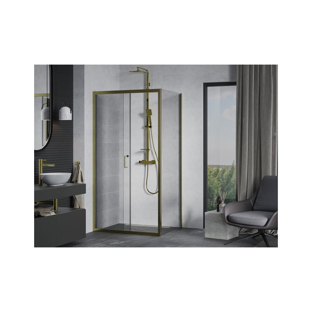 Mexen Apia sprchový kout s posuvnými dveřmi 110 (dveře) x 80 (stěna) cm, 5mm čiré sklo, zlatý profil, 840-110-080-50-00