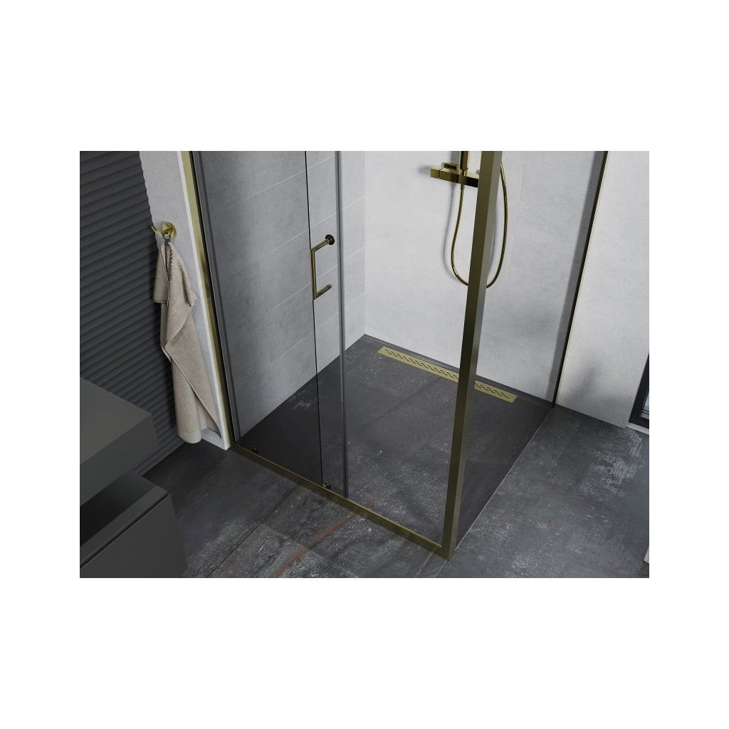 Mexen Apia sprchový kout s posuvnými dveřmi 125 (dveře) x 70 (stěna) cm, 5mm čiré sklo, zlatý profil, 840-125-070-50-00