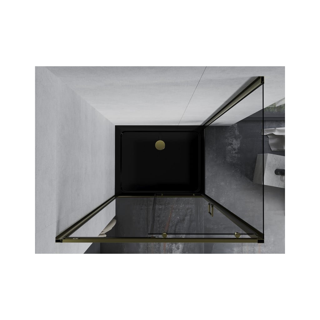 Mexen Apia sprchový kout s posuvnými dveřmi 130 (dveře) x 90 (stěna) cm, 5mm čiré sklo, zlatý profil + černá sprchová vanička SLIM, 840-130-090-50-00-4070G