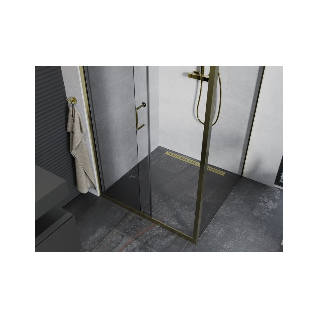 Mexen Apia sprchový kout s posuvnými dveřmi 135 (dveře) x 70 (stěna) cm, 5mm čiré sklo, zlatý profil, 840-135-070-50-00