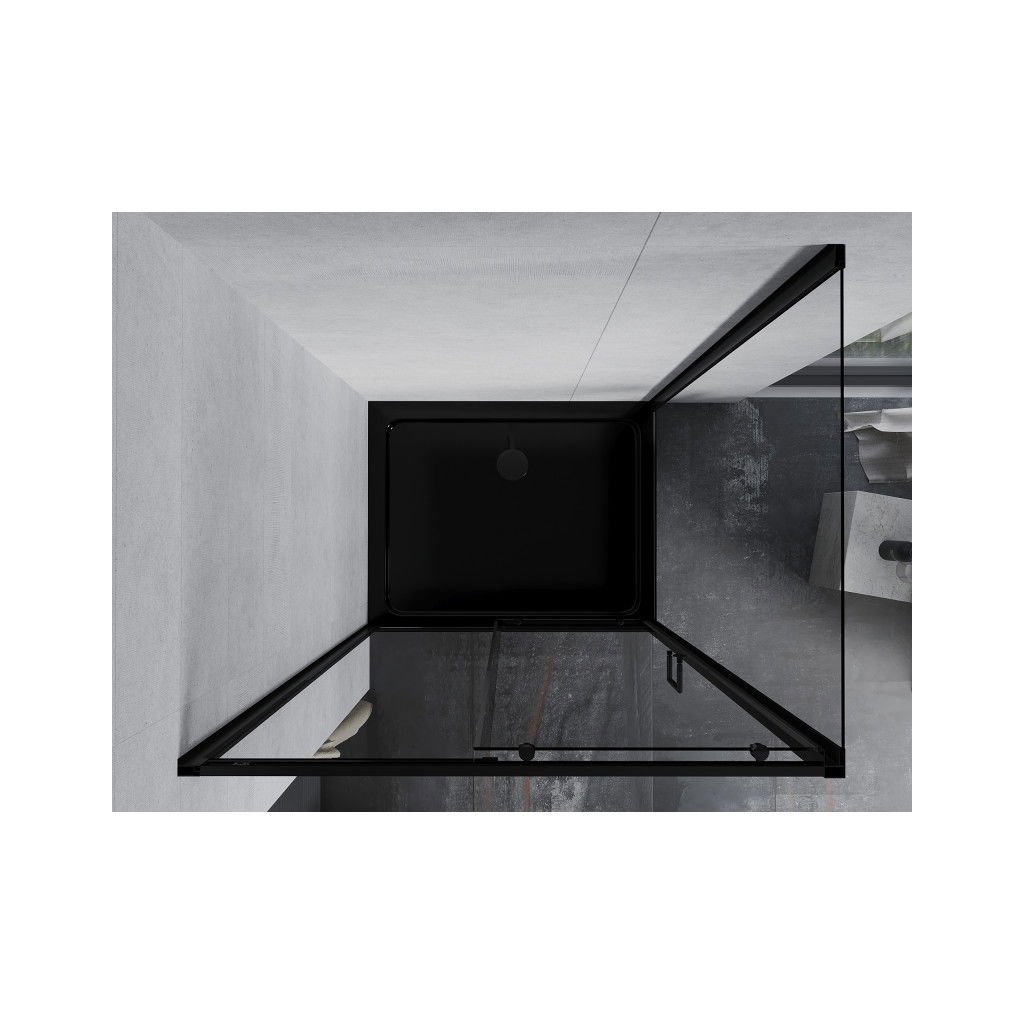 Mexen Apia sprchový kout s posuvnými dveřmi 140 (dveře) x 80 (stěna) cm, 5mm čiré sklo, černý profil + černá sprchová vanička s černým sifonem, 840-140-080-70-00-4070B