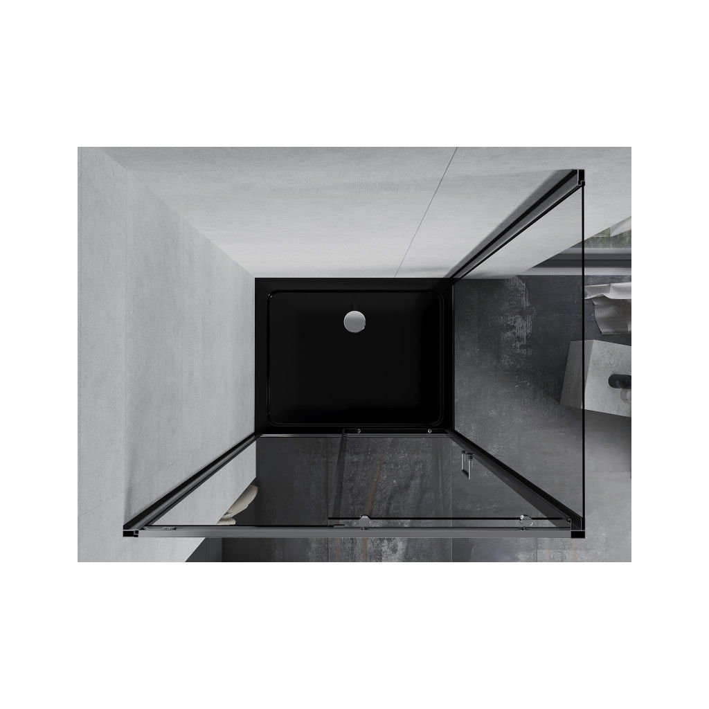 Mexen Apia sprchový kout s posuvnými dveřmi 140 (dveře) x 90 (stěna) cm, 5mm čiré sklo, chromový profil + černá sprchová vanička s chromovým sifonem, 840-140-090-01-00-4070