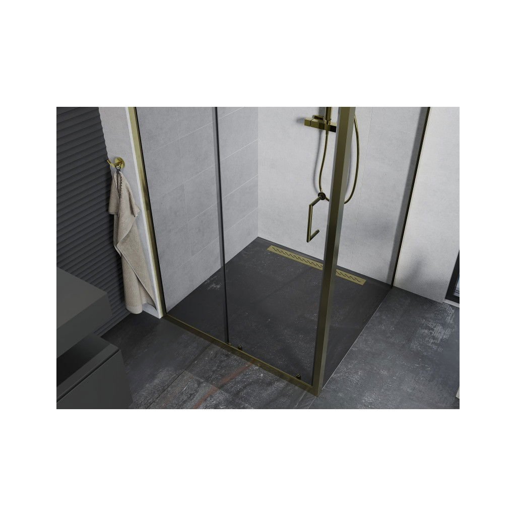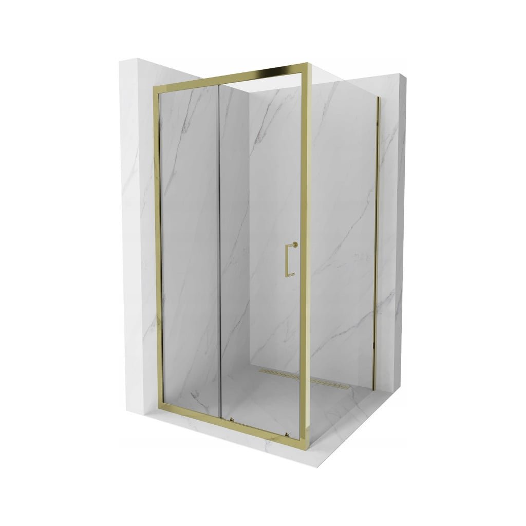 Mexen Apia sprchový kout s posuvnými dveřmi 90 (dveře) x 90 (stěna) cm, 5mm čiré sklo, zlatý profil, 840-090-090-50-00