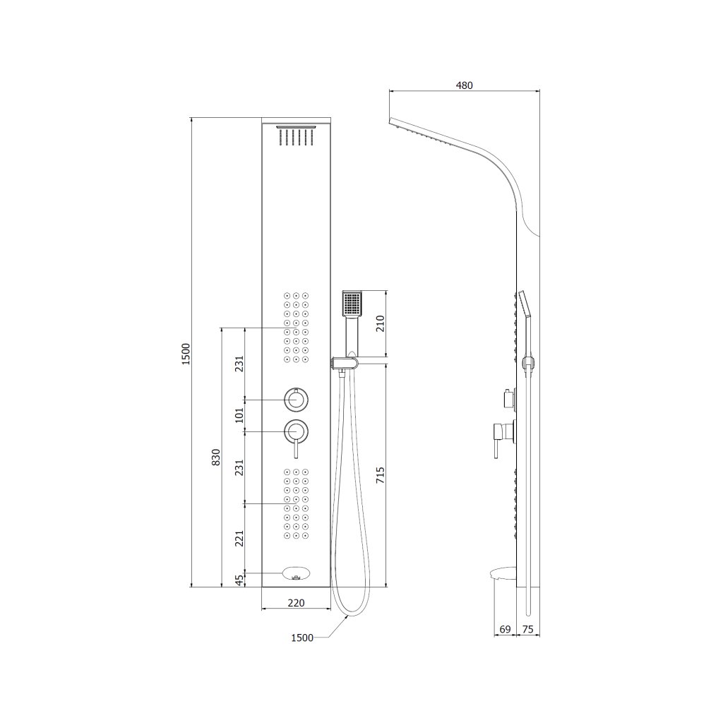 Mexen Ardo, sprchový panel s vanovým výtokem, černá matná, 7617-04-70