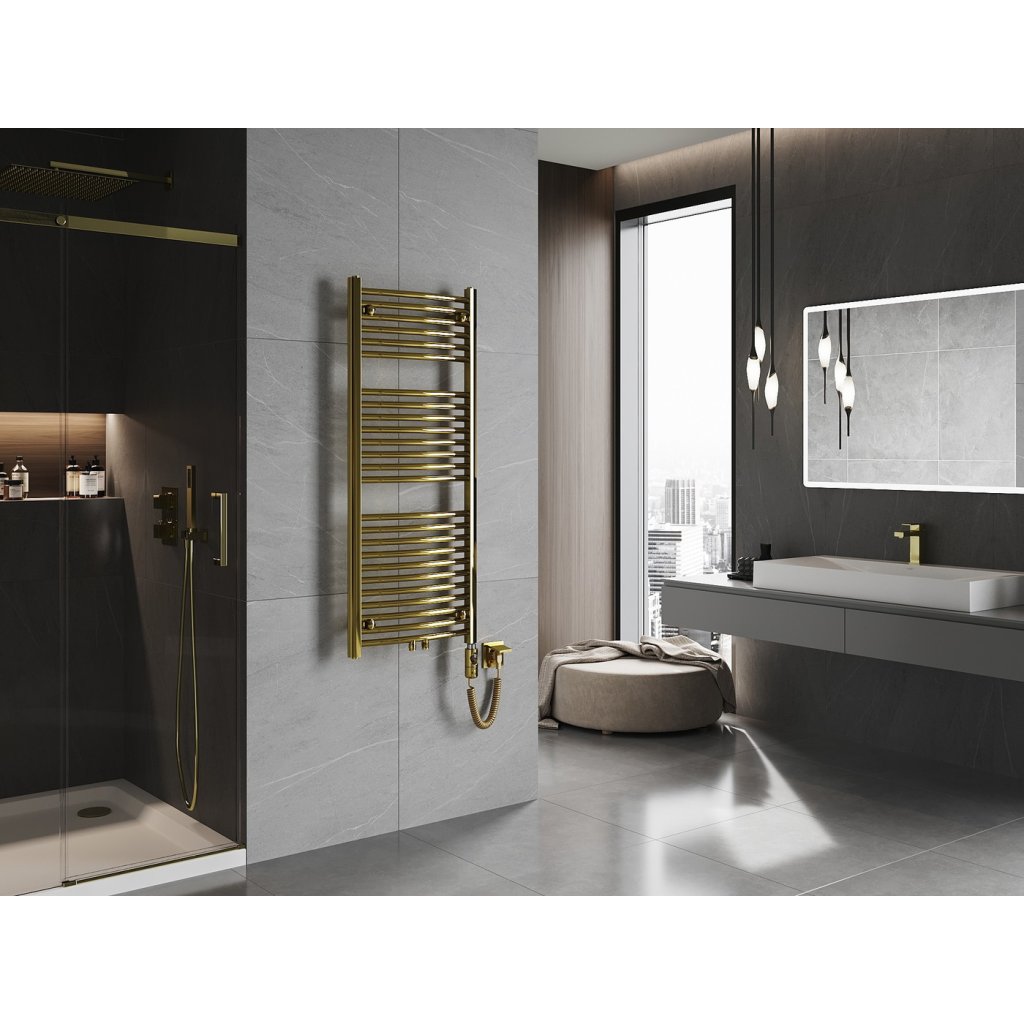Mexen Ares, elektrické topné těleso 1200x500 mm + topná tyč 600 W, zlatá lesklá, W102-1200-500-2600-50