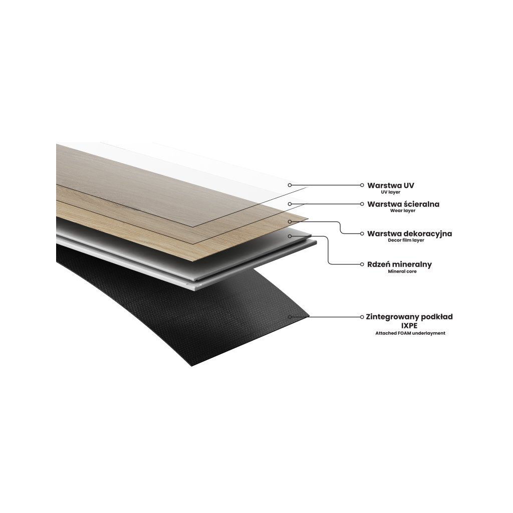 Mexen Aspen, vinylová podlaha 1240x182 mm SPC 6,5 mm, IXPE 1,5 mm, 4stranná V-drážka, dub, F1012-1240-182-505-4V1-01