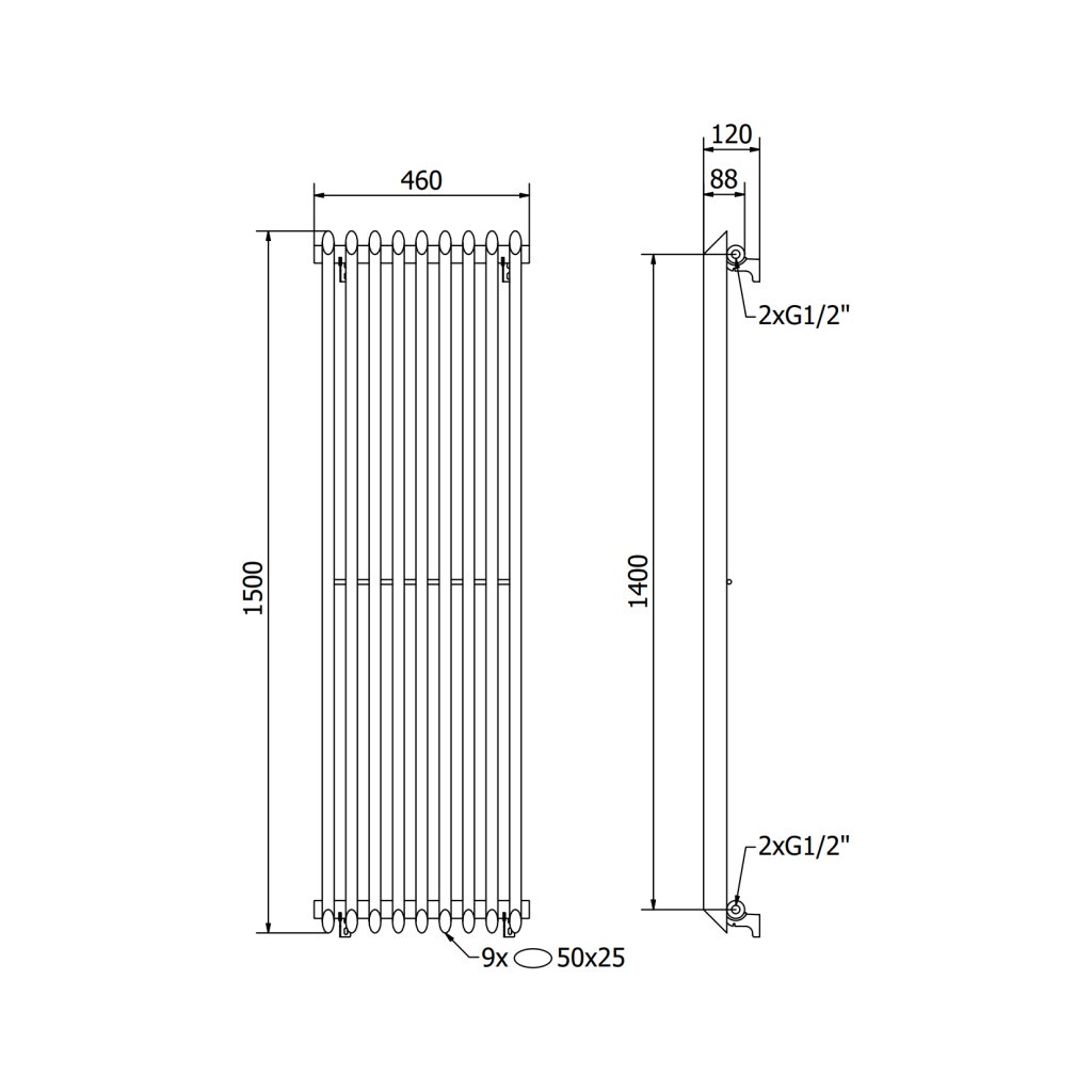 Mexen Atlanta, topné těleso 1500x460 mm, 894 W, černá, W211-1500-460-00-70