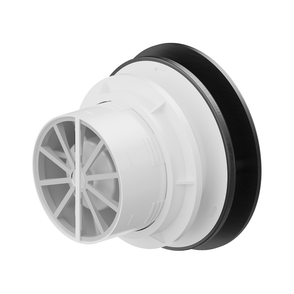 - Zpětná klapka, která zabraňuje zpětnému proudění vzduchu z větracích potrubí do místnosti