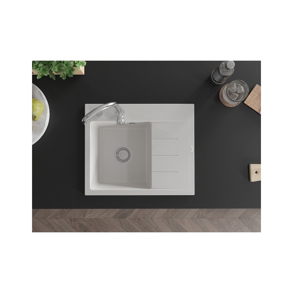 Mexen Ben, 1-komorový granitový dřez 600x500x190 mm, levý+ chromový sifon, bílá, 6522605000-20