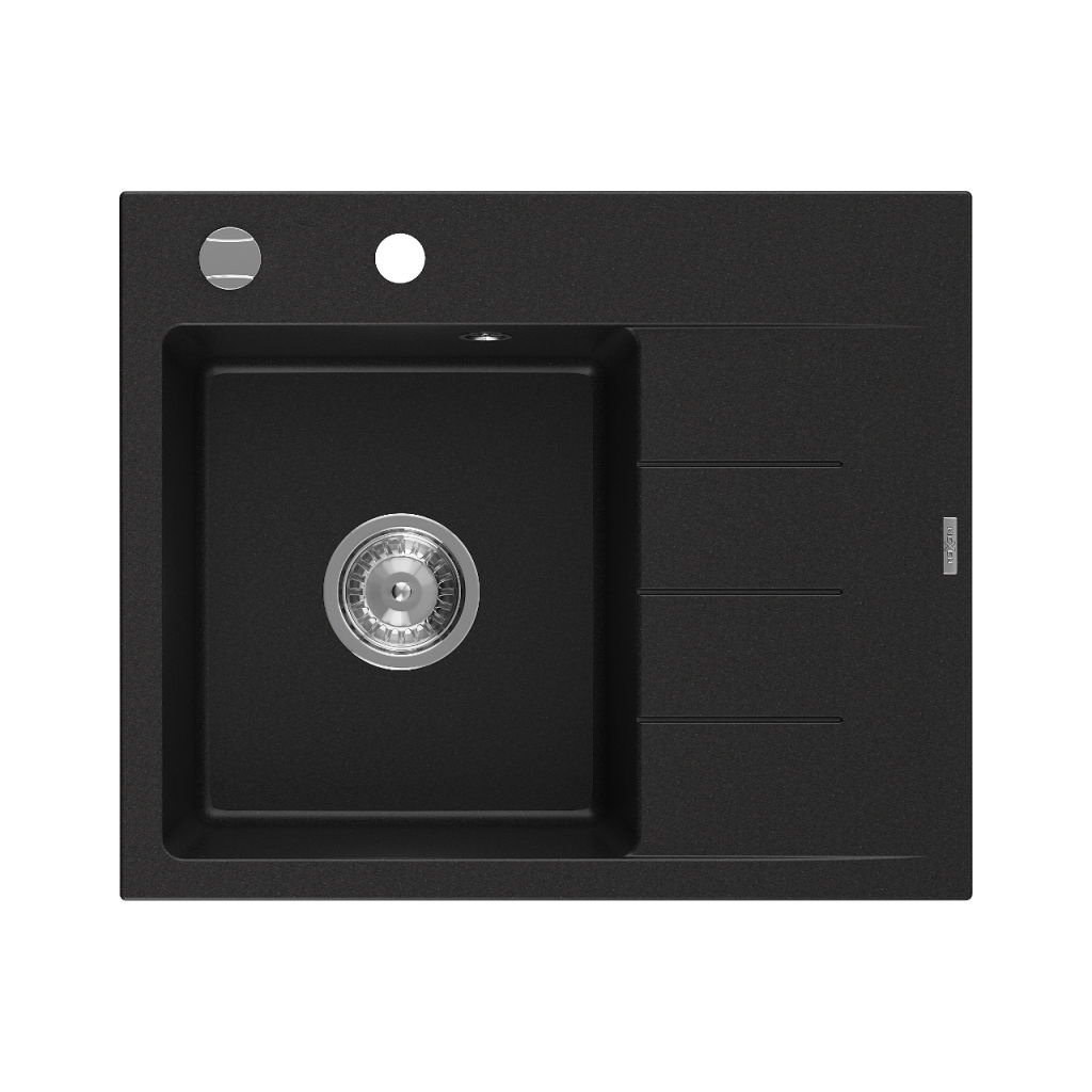 Mexen Ben, 1-komorový granitový dřez 600x500x190 mm, levý+ chromový sifon, černý, 6522605000-77