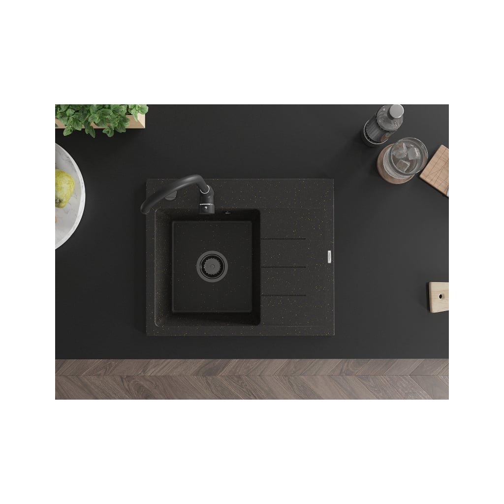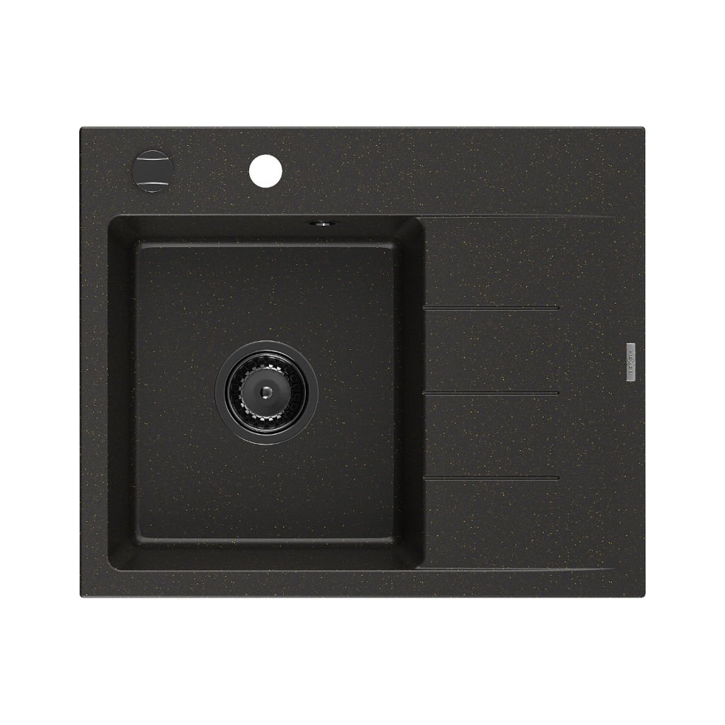 Mexen Ben, 1-komorový granitový dřez 600x500x190 mm, levý + černý sifon, černá-zlatá metalíza, 6522605000-75-B