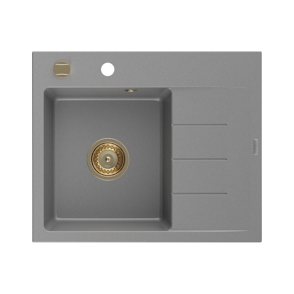 Mexen Ben, 1-komorový granitový dřez 600x500x190 mm, levý + zlatý sifon, šedá, 6522605000-71-G