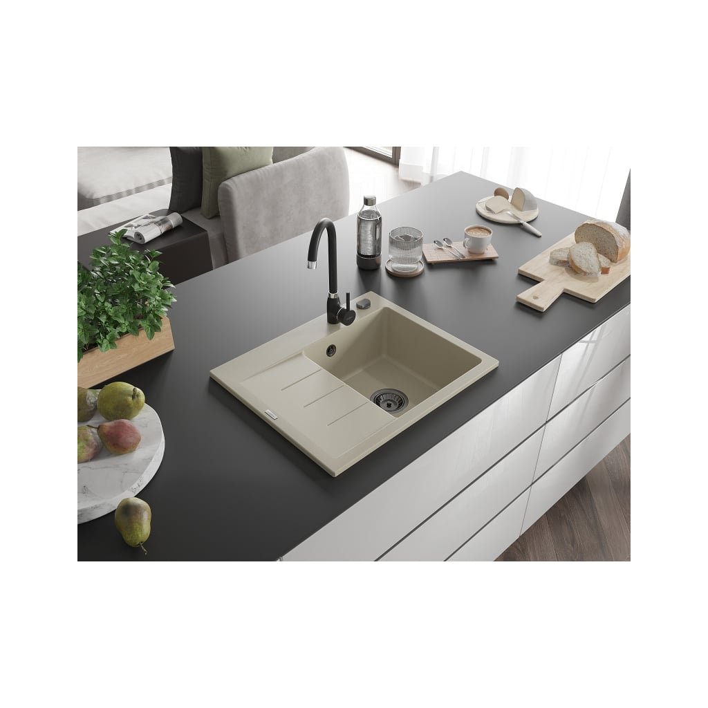 Mexen Ben, 1-komorový granitový dřez 600x500x190 mm, pravý + černý sifon, béžová, 6523605000-69-B