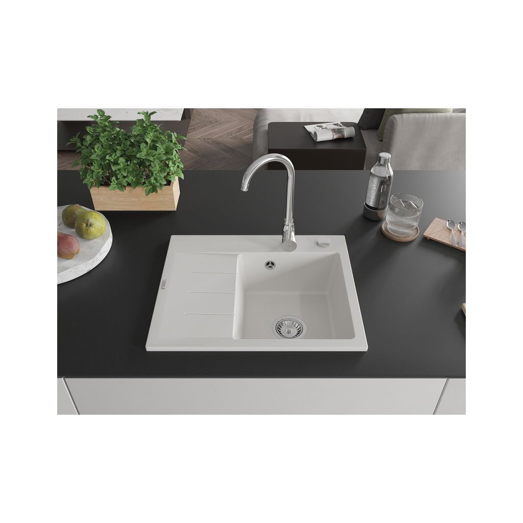 Mexen Ben, 1-komorový granitový dřez 600x500x190 mm, pravý + chromový sifon, bílá, 6523605000-20
