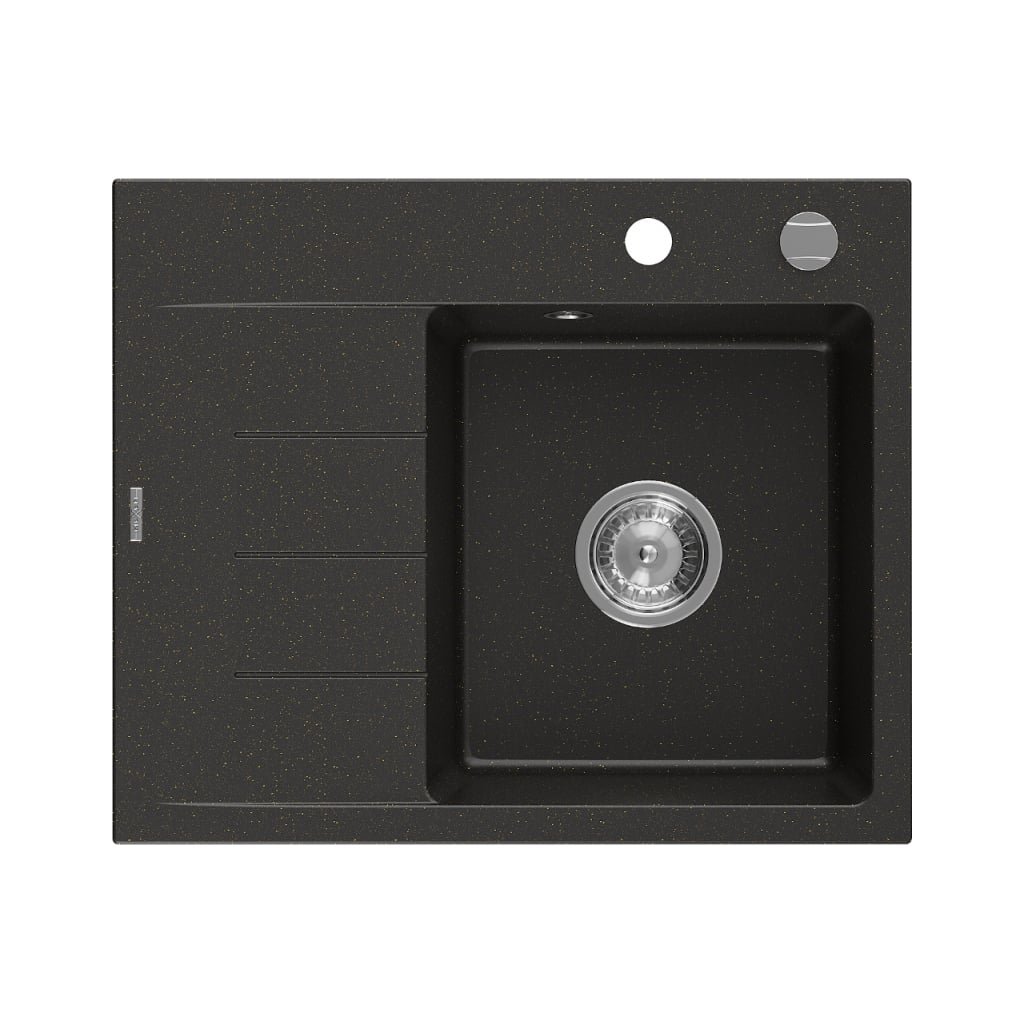 Mexen Ben, 1-komorový granitový dřez 600x500x190 mm, pravý + chromový sifon, černá-zlatá metalíza, 6523605000-75