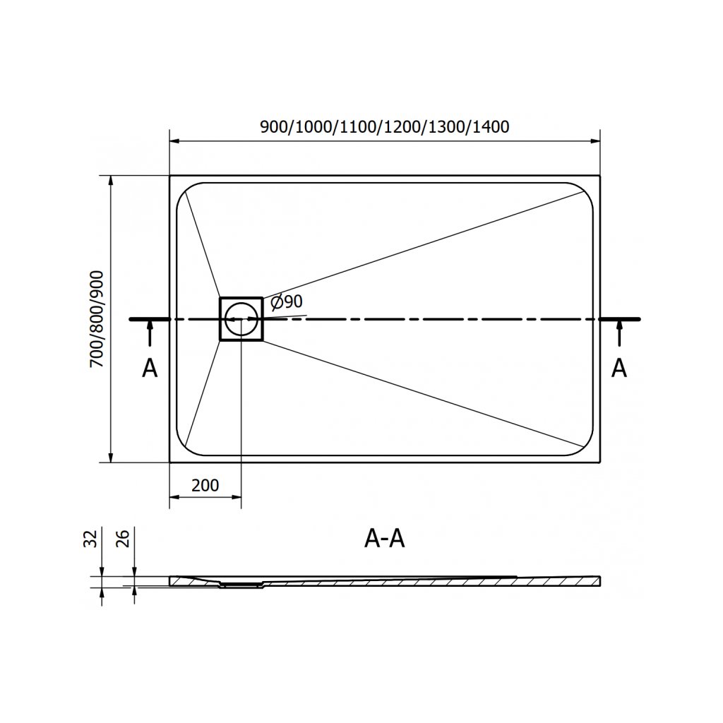- Průměr odtoku: 90 mm