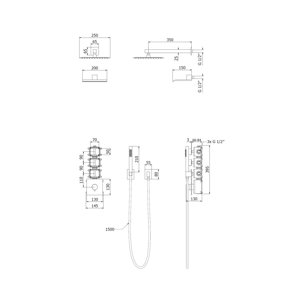 - Dvě dešťové sprchy s deštěm a kaskádovým proudem
