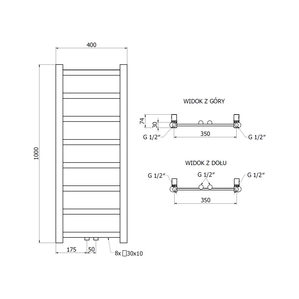 Mexen Bolt, topné těleso 1000 x 400 mm, 228 W, spodní a středové, černá, W126-1000-400-00-70