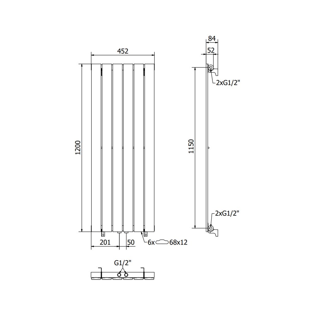 - 4xG 1/2" nahoru a dolů vpravo nebo vlevo - Možnost montáže topné tyče