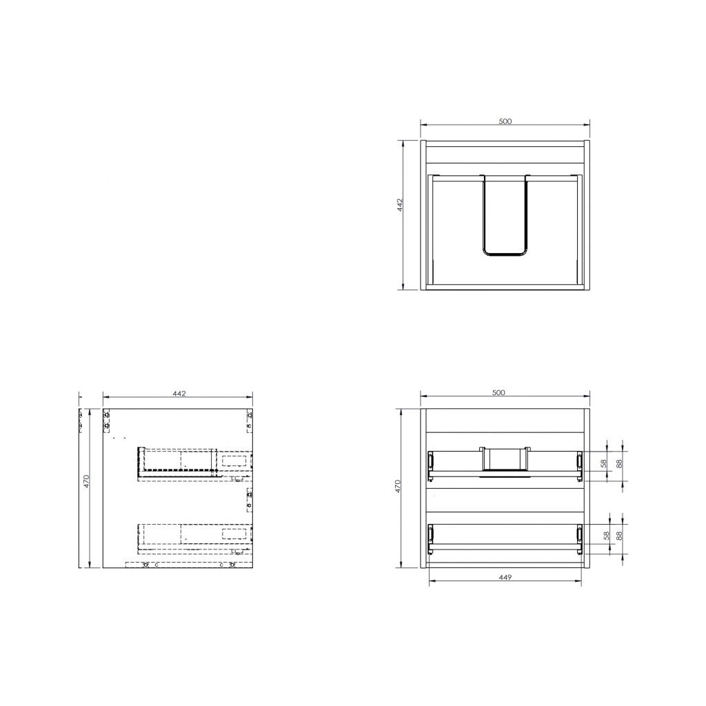Mexen Box-A, závěsná skříňka 50 cm, 2 zásuvky, dub, 91AX0-0500-470-2-81