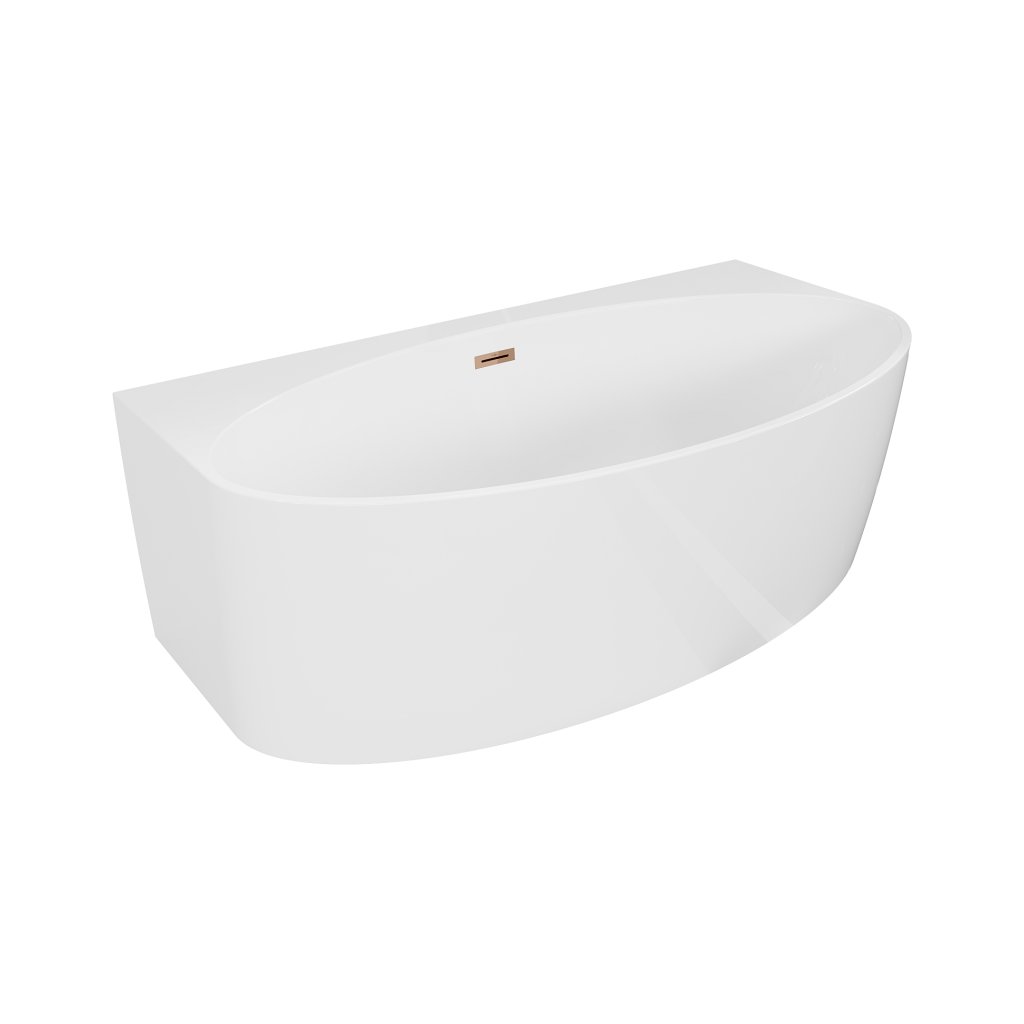 Mexen Bruna, volně stojící vana ke stěně 150 x 82 cm, bílá lesklá, růžové zlato, 52731508200-60