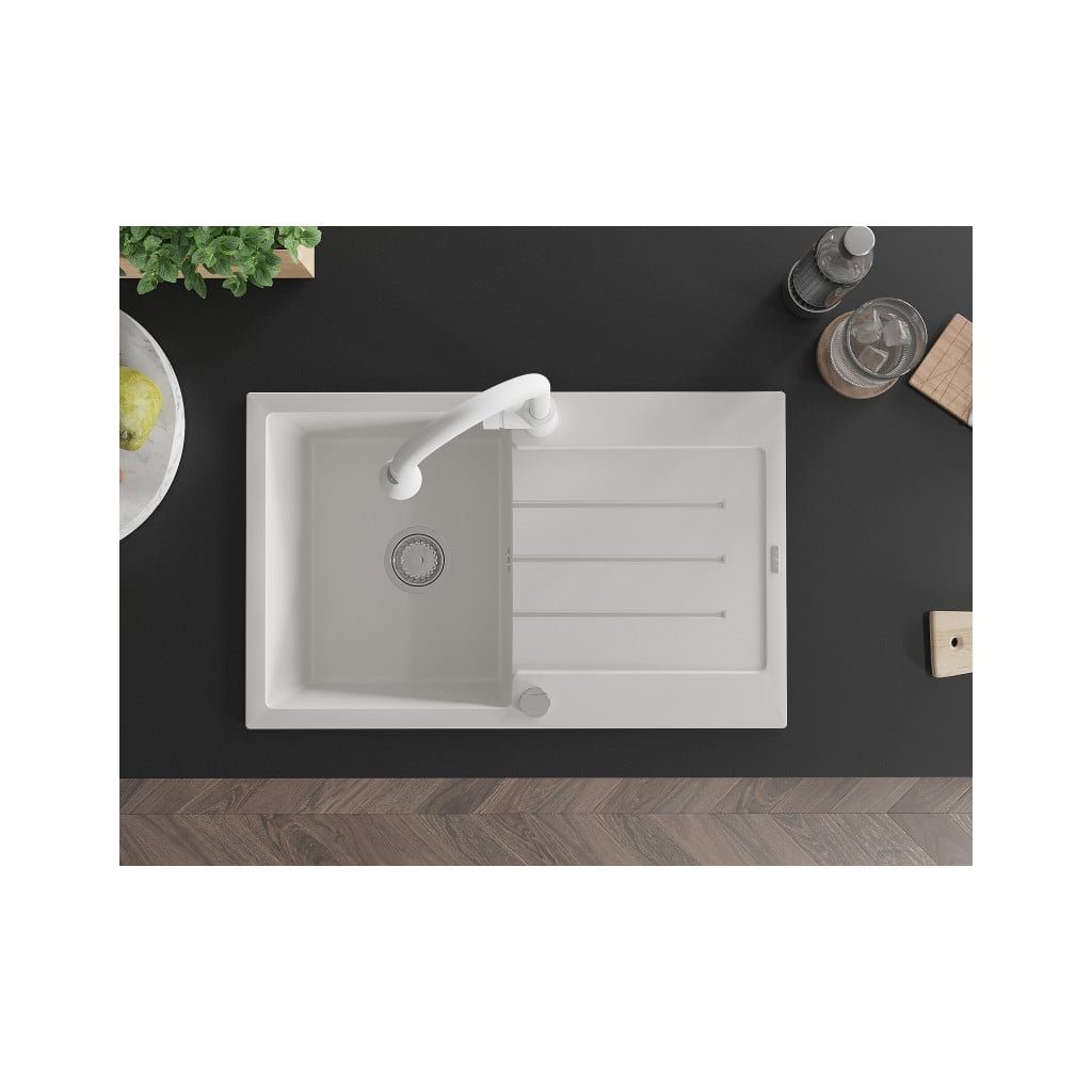 Mexen Bruno, 1-komorový granitový dřez 795x495x200 mm a dřezová baterie Elia, bílá, 6513-20-670101-20