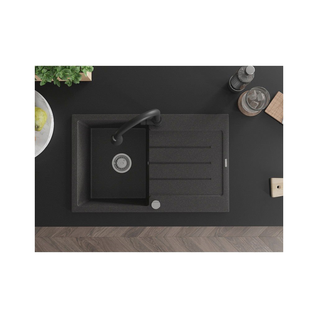 Mexen Bruno, 1-komorový granitový dřez 795x495x200 mm a dřezová baterie Elia, černá skvrnitá, 6513-76-670101-70