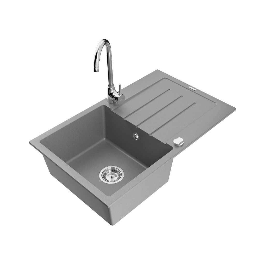 Mexen Bruno, 1-komorový granitový dřez s odkapávačem 80x50 cm a kuchyňskou baterií Telma, šedá, 6513-71-670200-00