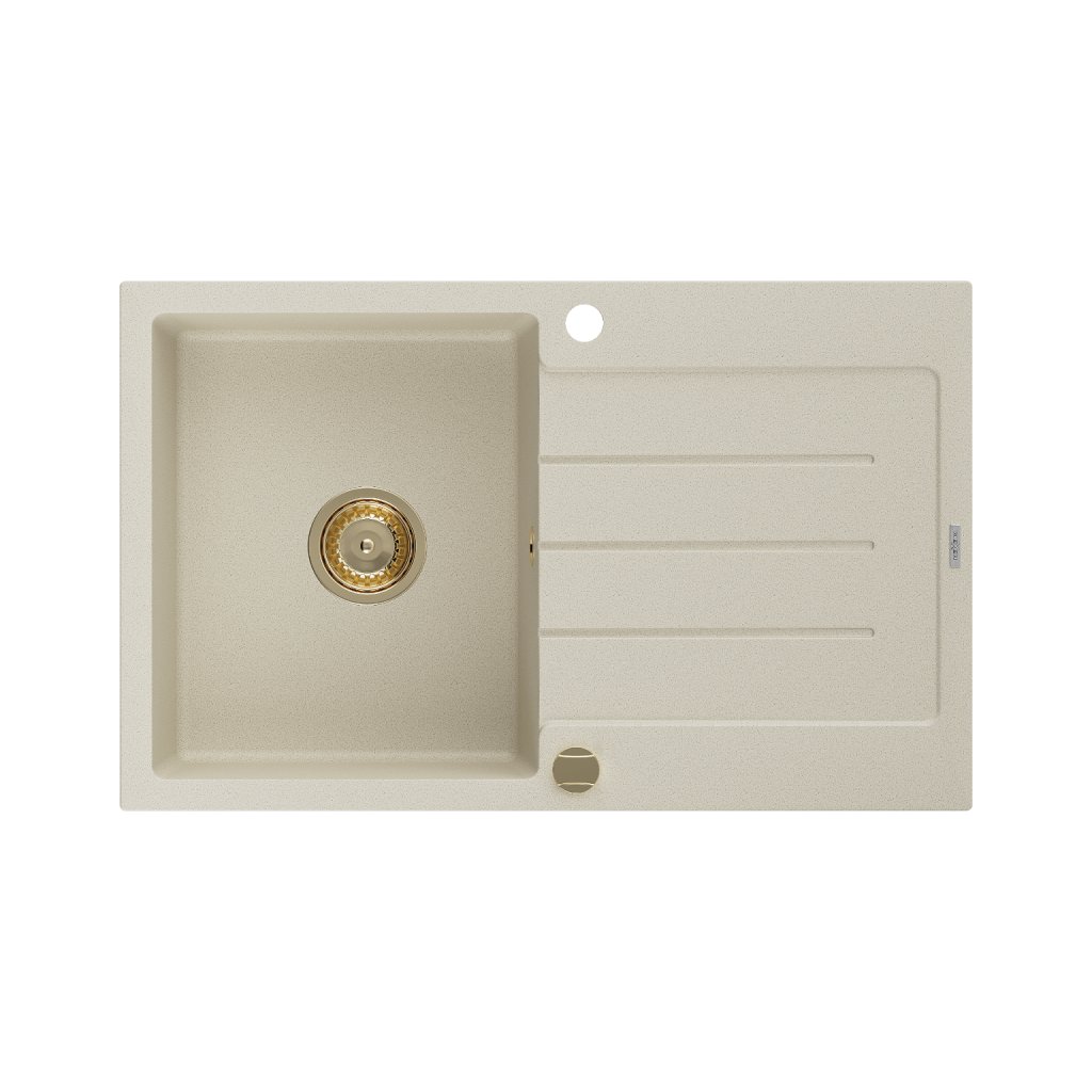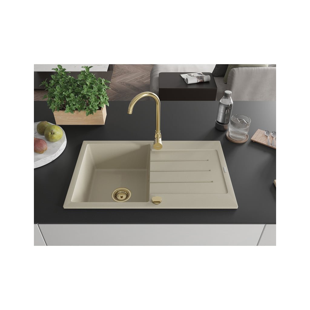 Mexen Bruno, granitový dřez 795x495x200 mm, 1-komorový, béžová se zlatým sifonem, 6513791010-69-G