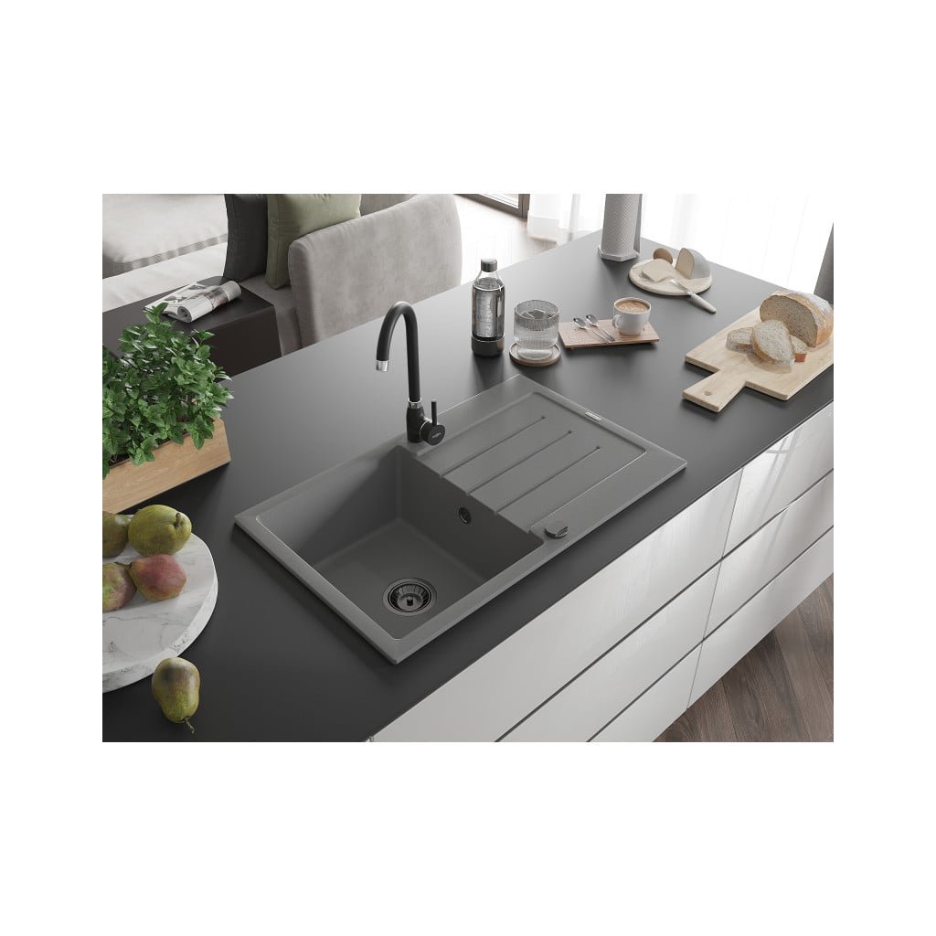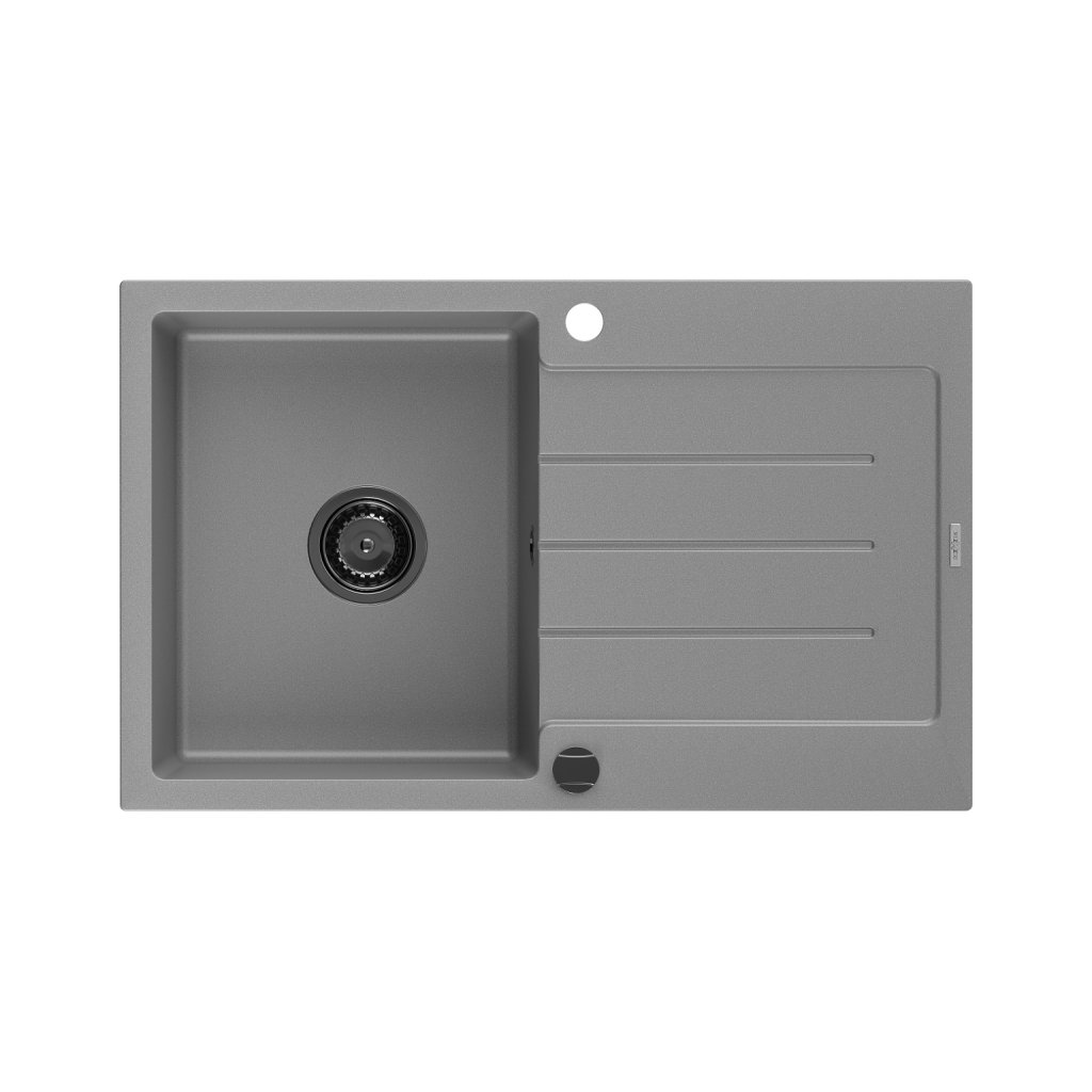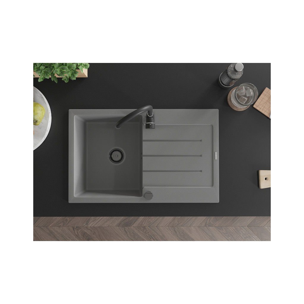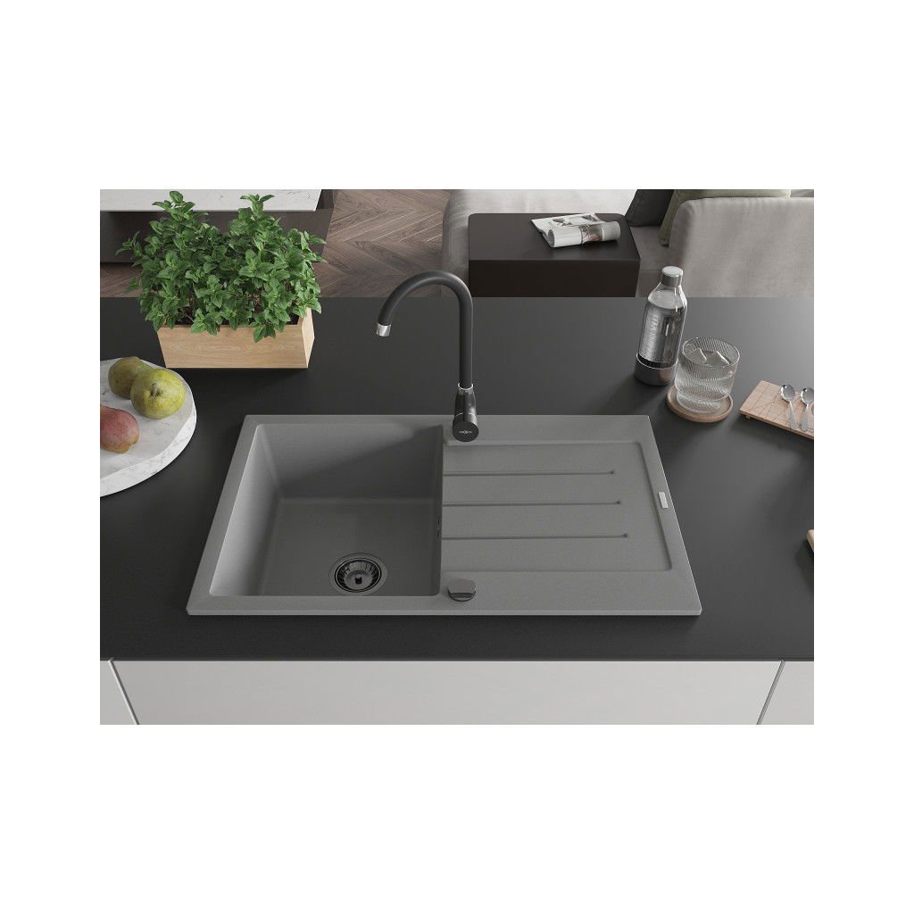 Mexen Bruno, granitový dřez 795x495x200 mm, 1-komorový, šedá s černým sifonem, 6513791010-71-B
