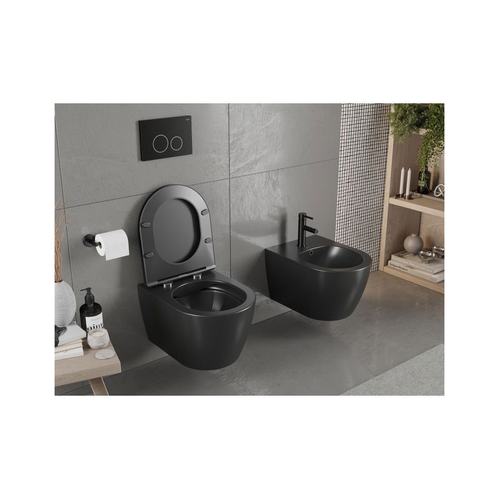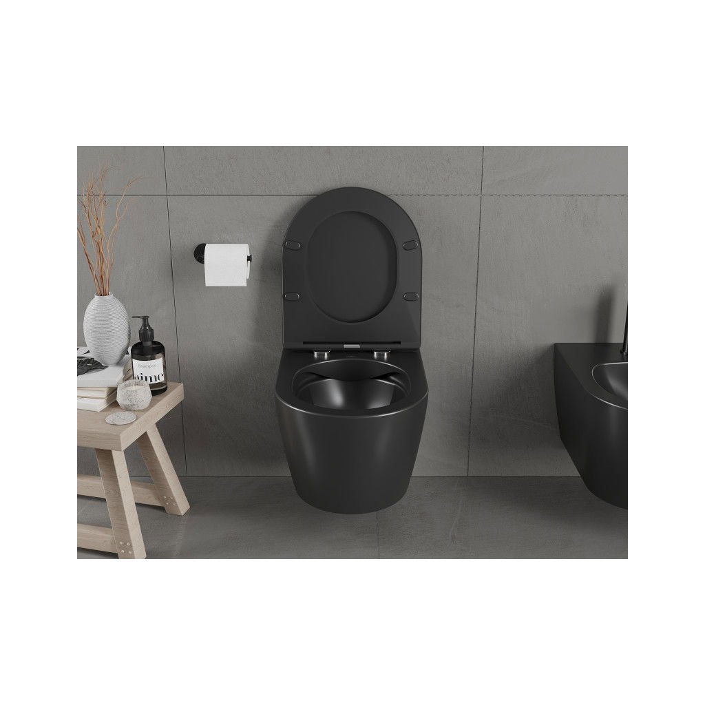 Mexen CARMEN Rimless závěsná wc mísa, 49 x 37 cm, černá matná, 3388XX85