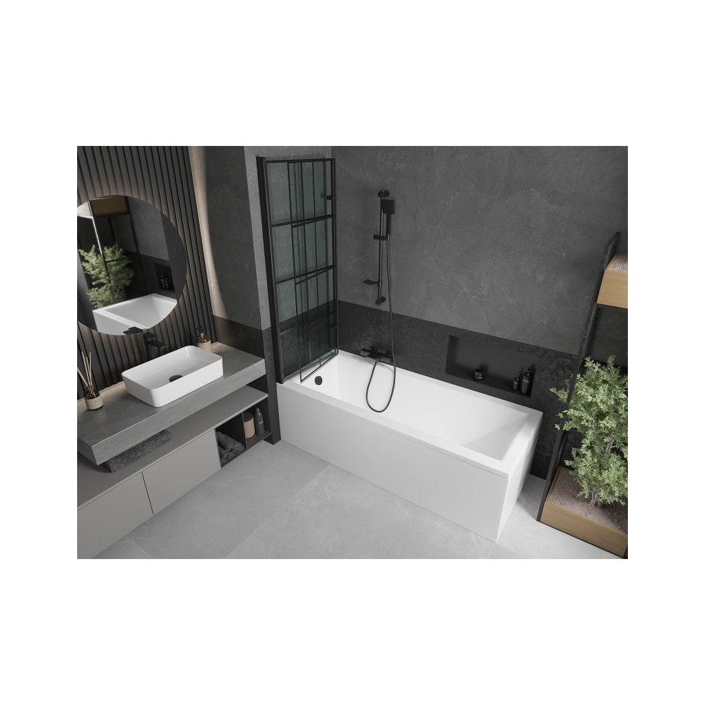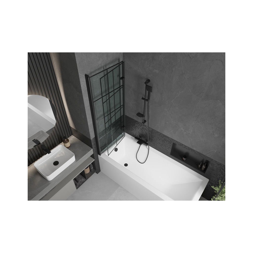 Mexen Castor, 2-křídlová vanová zástěna 120 x 150 cm, 6 mm čiré sklo-černý vzor, černý profil, 892-120-002-70-77