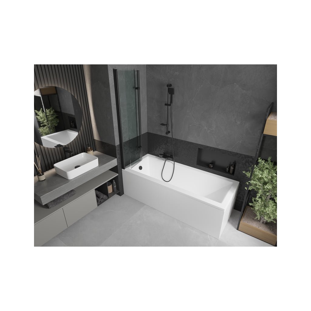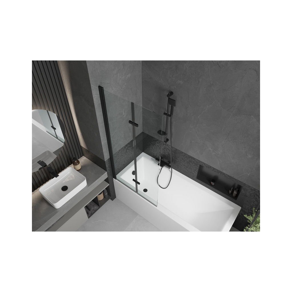 Mexen Castor, 2-křídlová vanová zástěna 80 x 150 cm, 6 mm čiré sklo, černý profil, 892-080-002-70-00