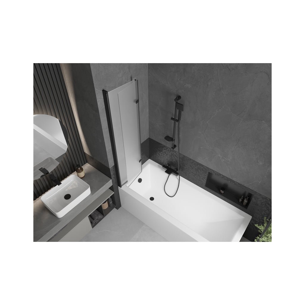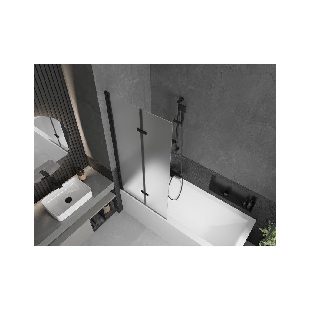 Mexen Castor, 2-křídlová vanová zástěna 80 x 150 cm, 6 mm námraza sklo, černý profil, 892-080-002-70-30
