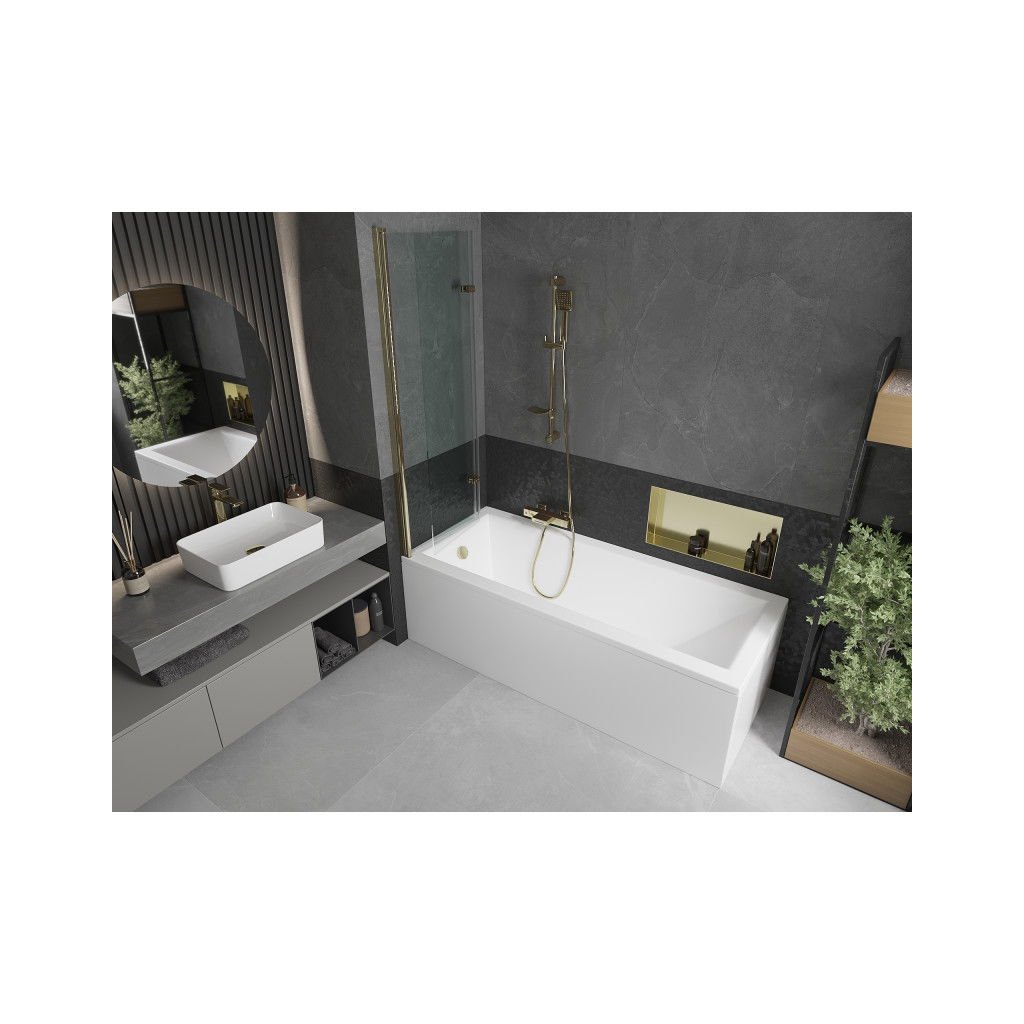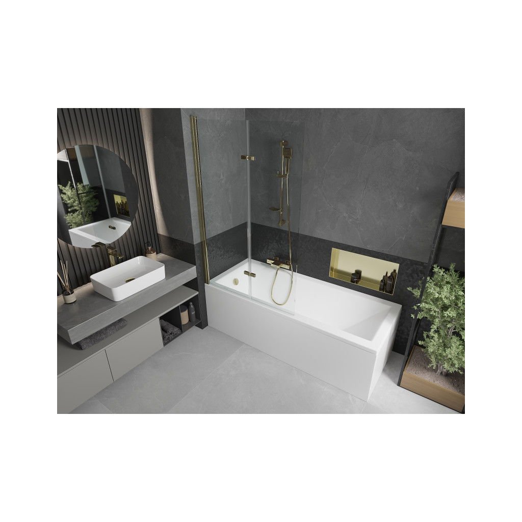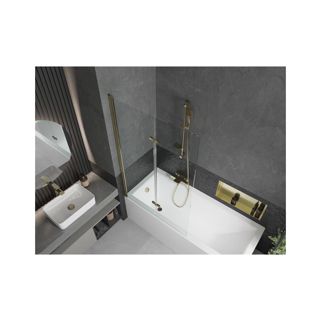 Mexen Castor, vanová zástěna 2-křídlová 100 x 150 cm, otočné křídlo, 6 mm čiré sklo, zlatý profil, 892-100-002-50-00