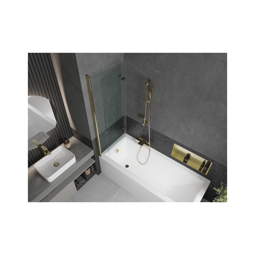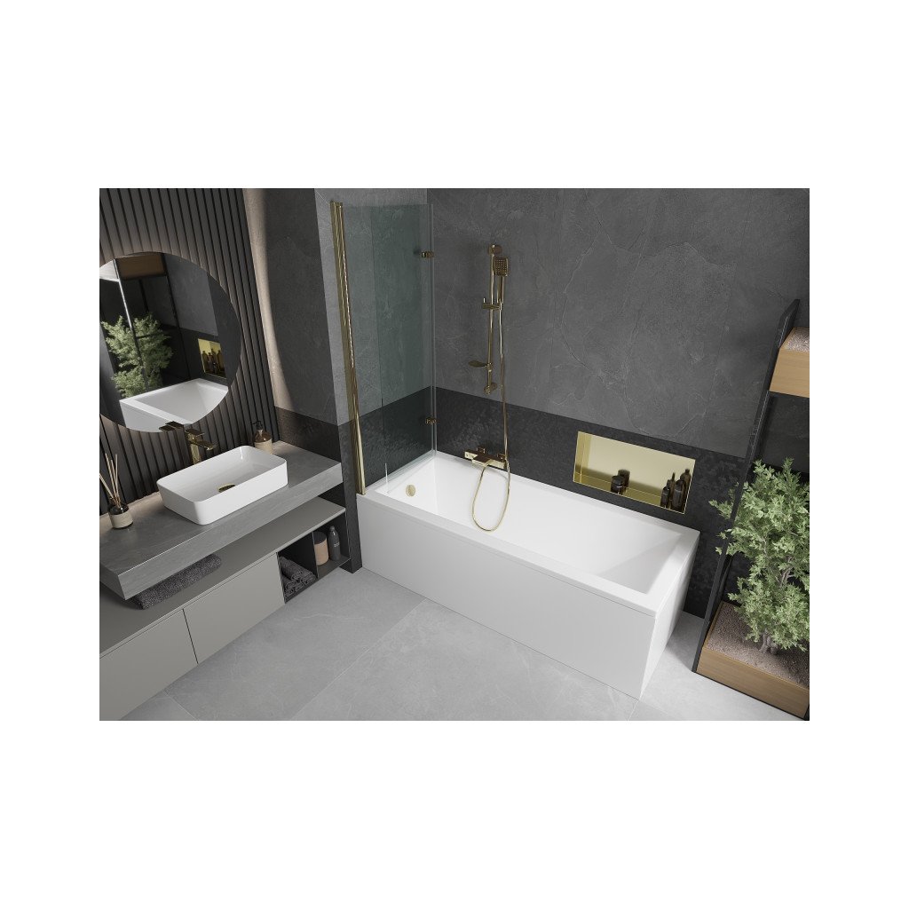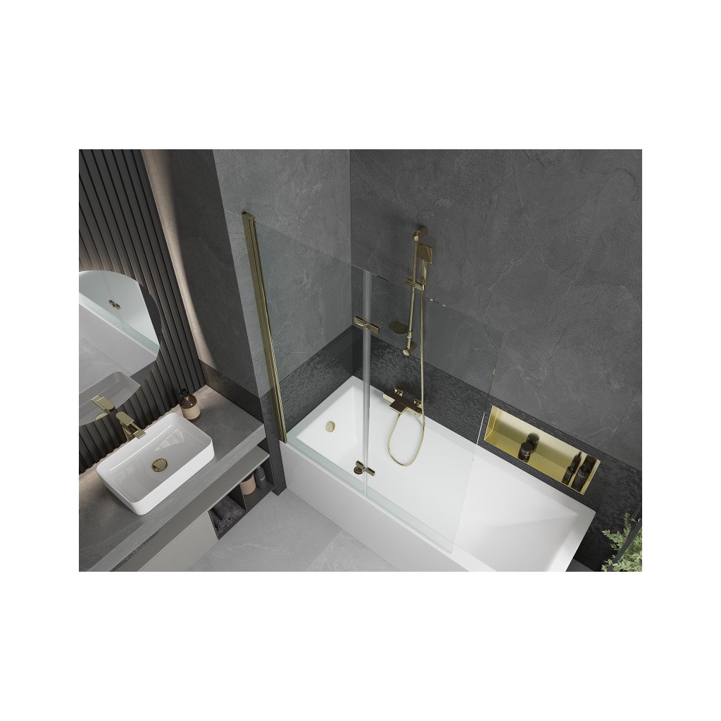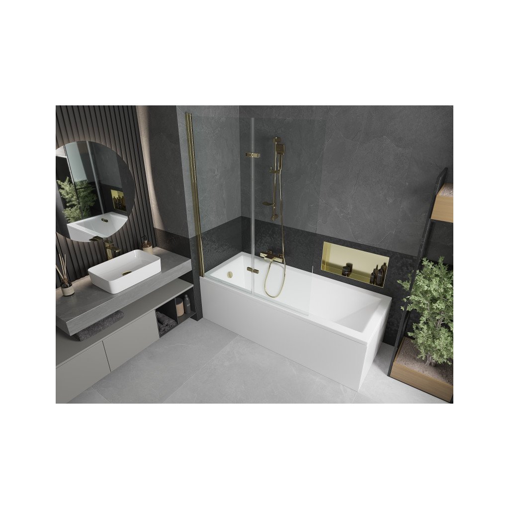 Mexen Castor, vanová zástěna 2-křídlová 120 x 150 cm, otočné křídlo, 6 mm čiré sklo, zlatý profil, 892-120-002-50-00