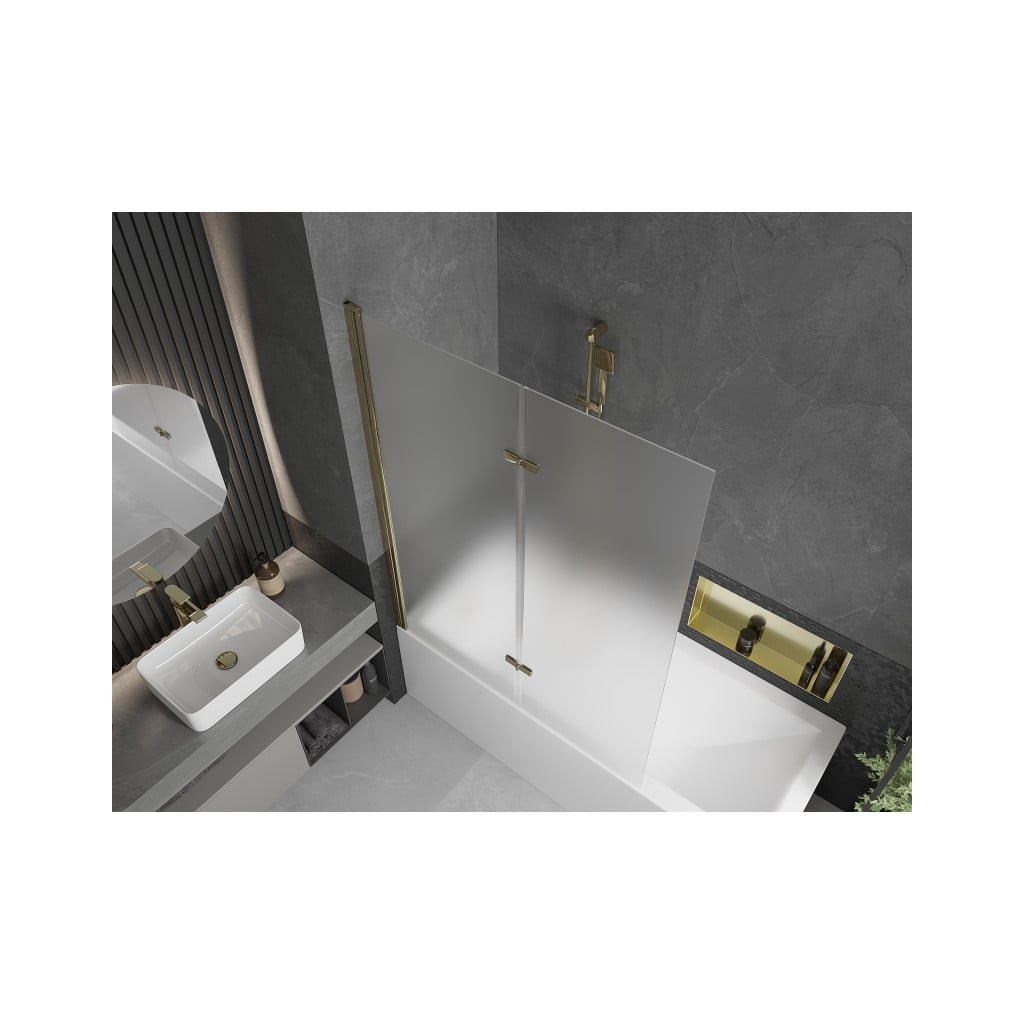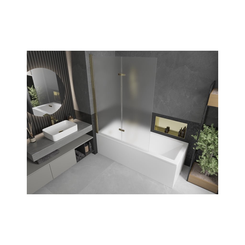 Mexen Castor, vanová zástěna 2-křídlová 120 x 150 cm, otočné křídlo, 6 mm námraza sklo, zlatý profil, 892-120-002-50-30