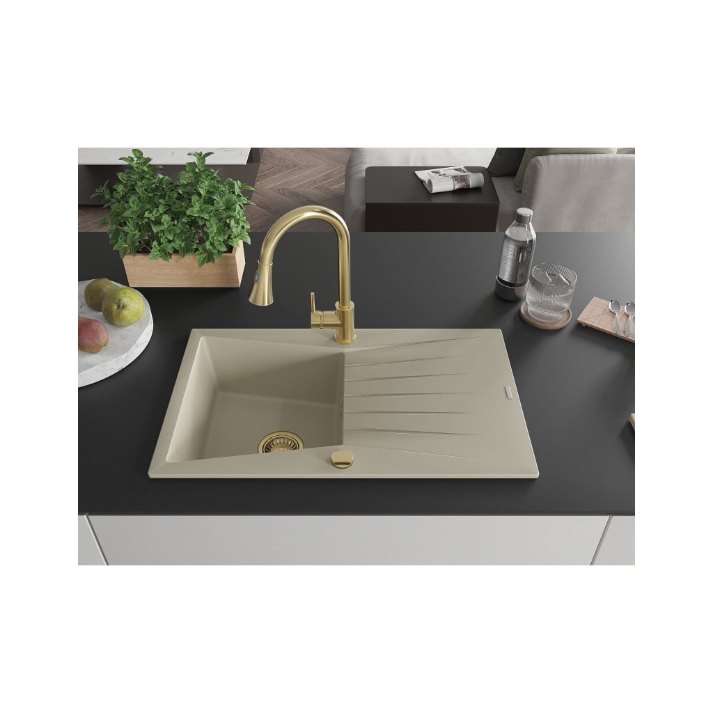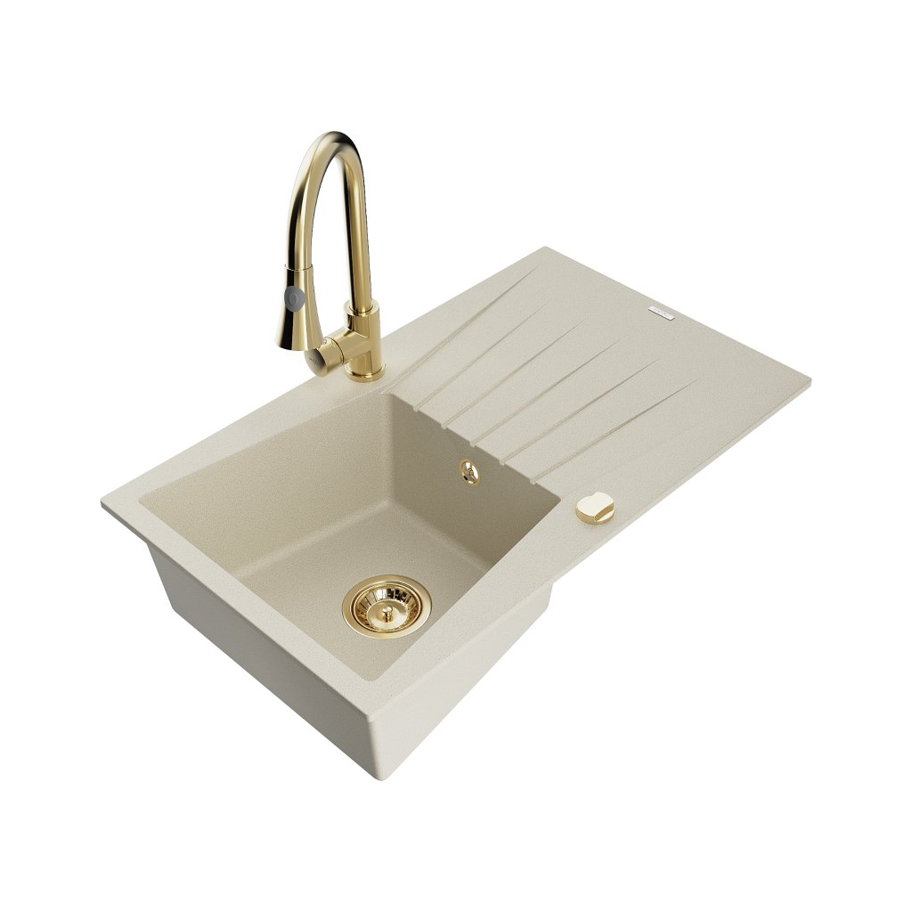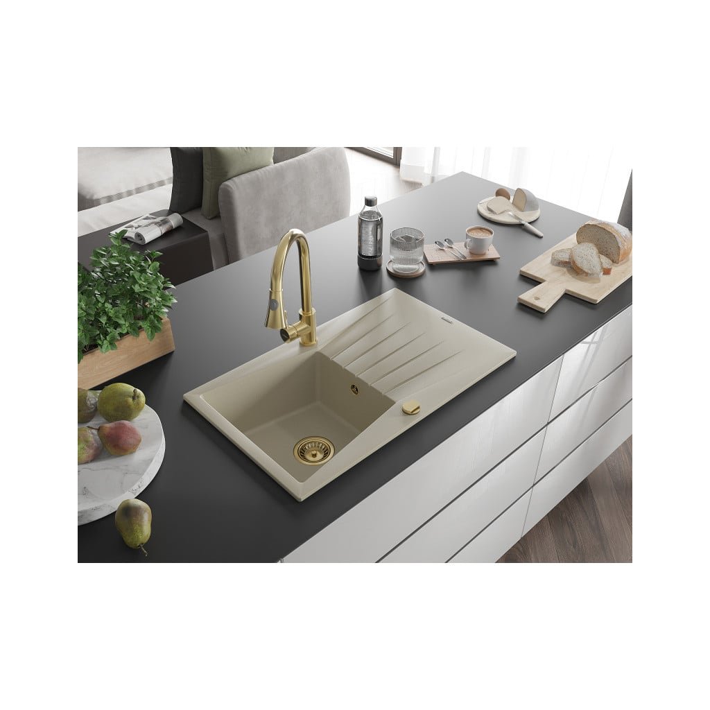 Mexen Cesar, 1-komorový granitový dřez 775x470x190 mm a dřezová baterie Elia, béžová, 6514-69-670101-50