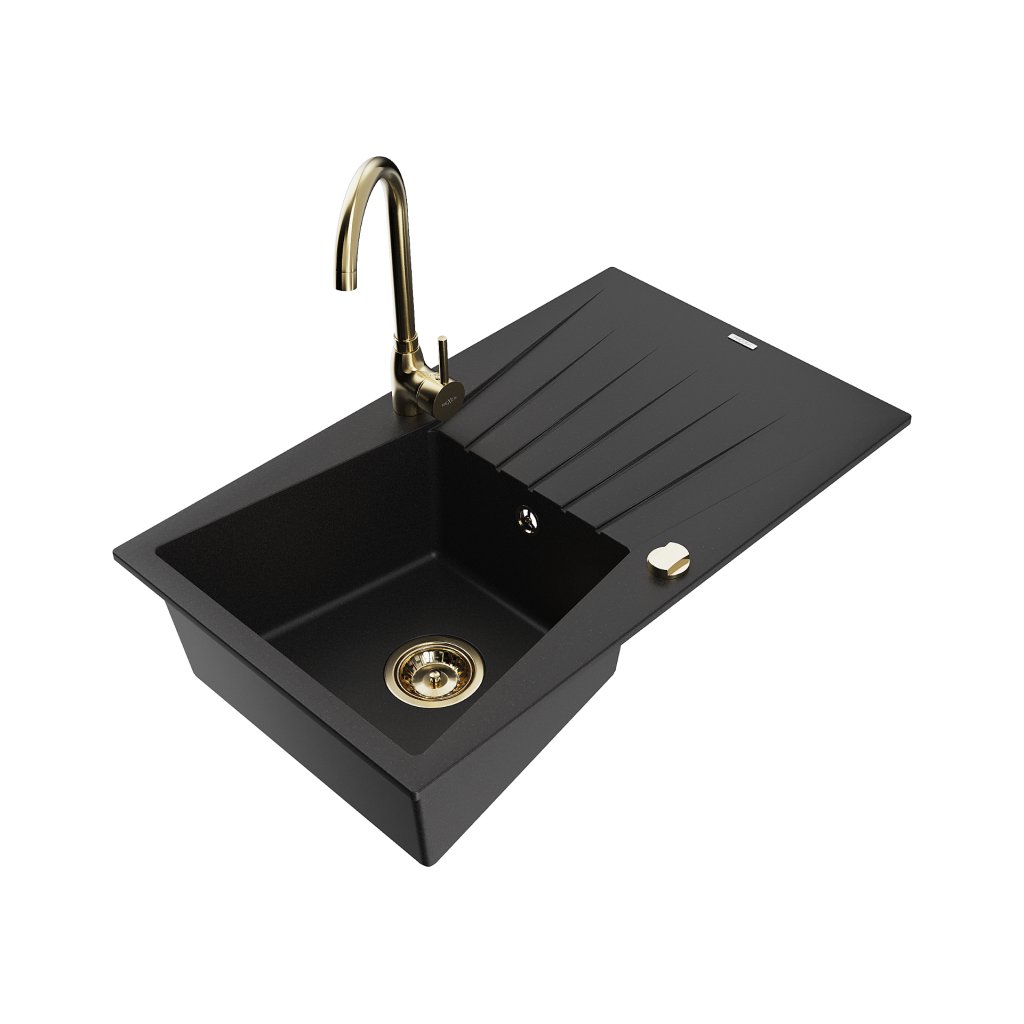 Mexen Cesar, 1-komorový granitový dřez s odkapávačem 78x47 cm a kuchyňskou baterií Telma, černá, 6514-77-670200-50